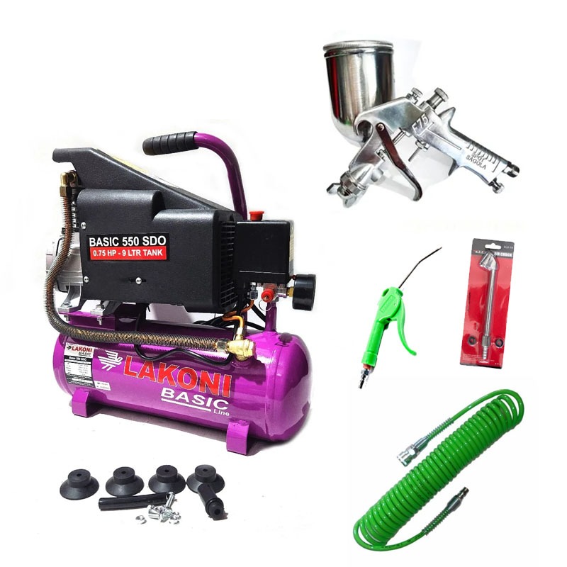 PAKET LENGKAP SIAP PAKAI UNTUK CAT Mesin Kompresor Angin Silent Oilless 1 HP 9 Liter / Compressor Angin Silent Oilless Compressor Oilles 3/4HP 24L MOLLAR