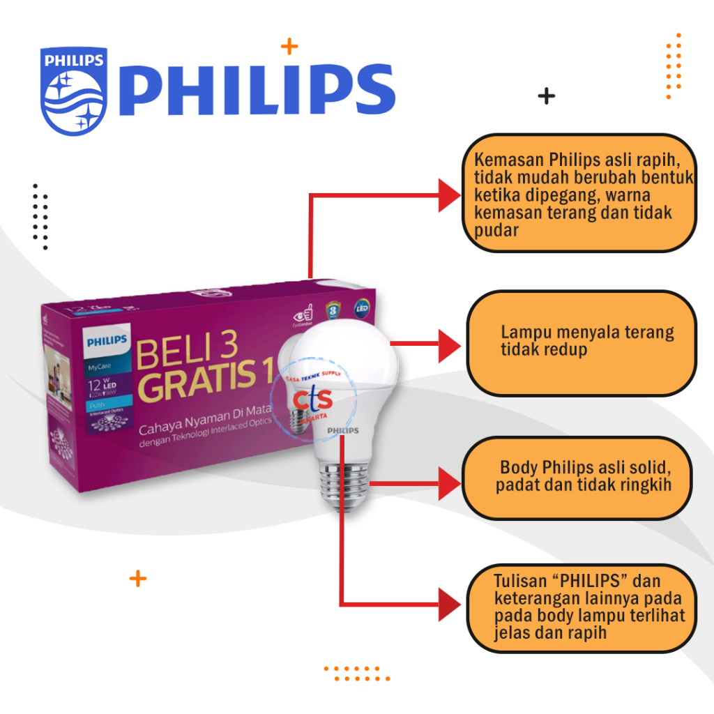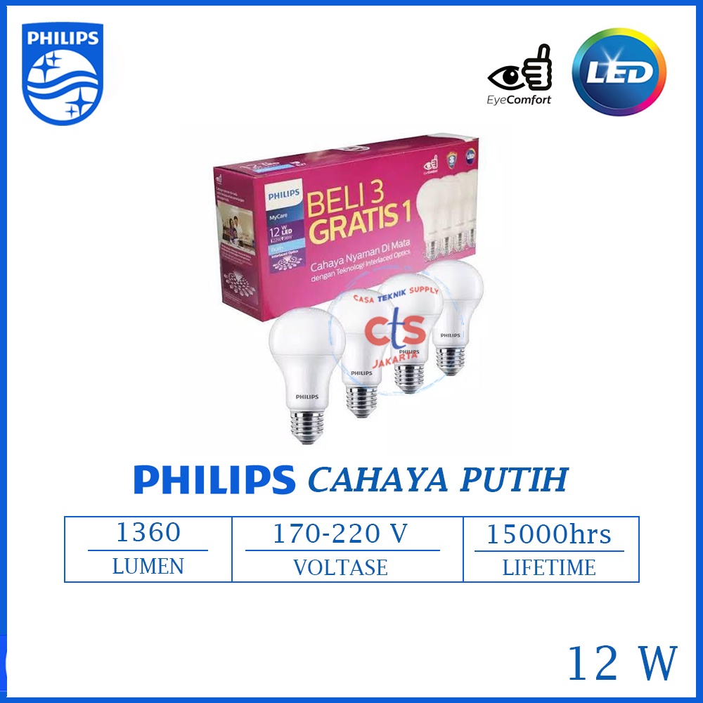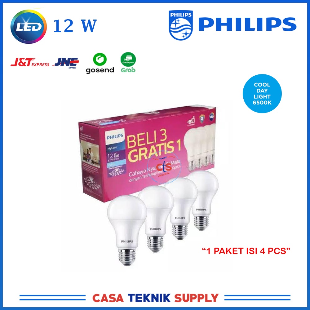 PAKET Lampu LED Philips 12 watt Bolam Philip 12w 12 w (Paket isi 4 pcs)