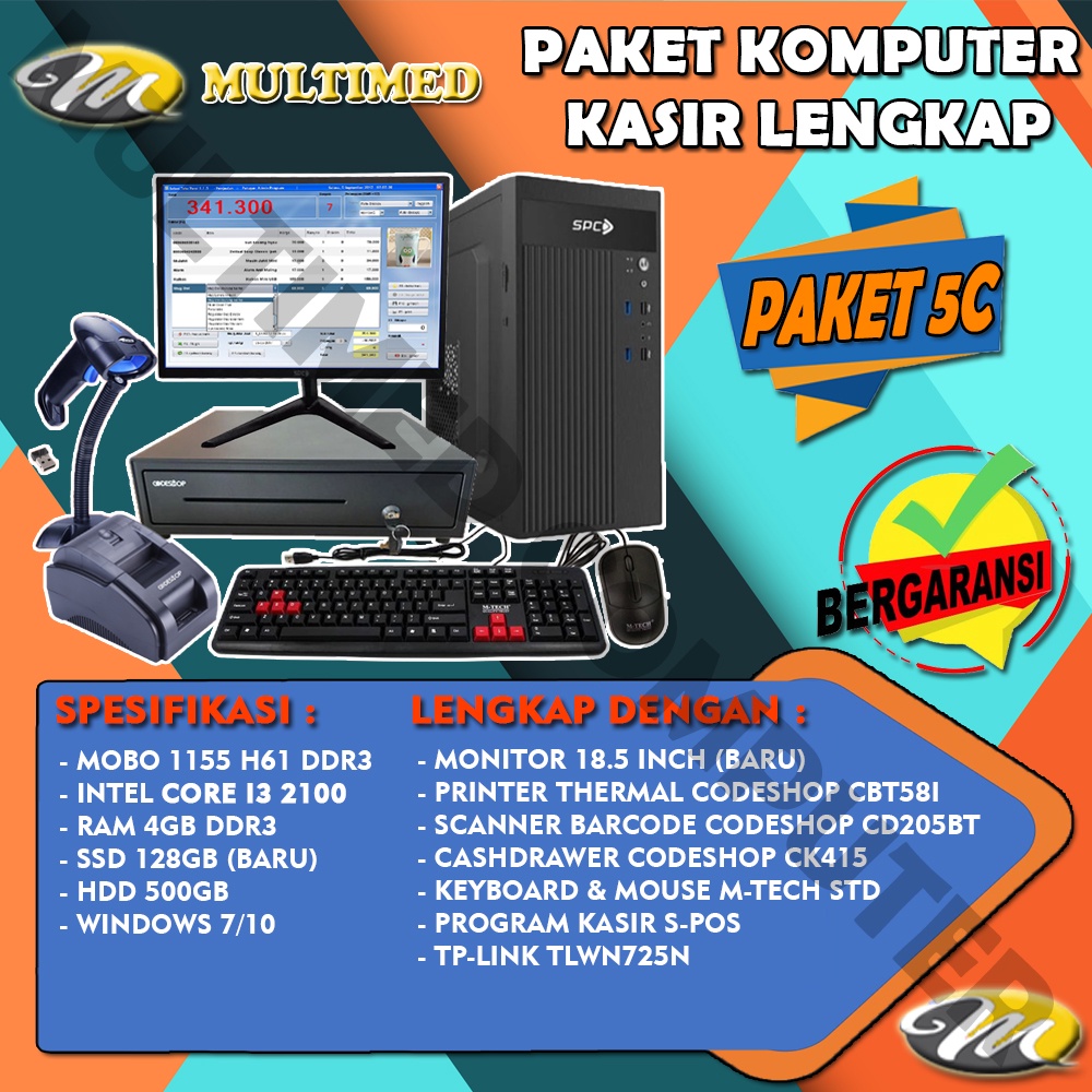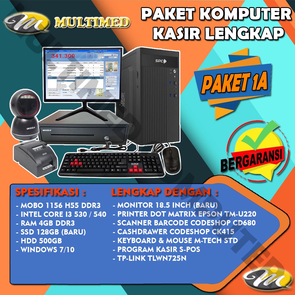 PAKET PC KASIR / KOMPUTER KASIR SIAP PAKAI LENGKAP DENGAN PROGRAM POS