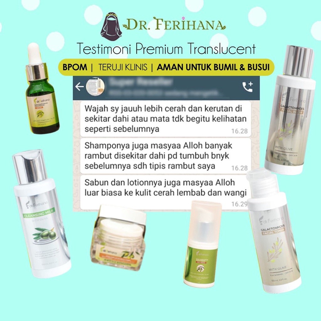 Paket Premium Translucent dr. Ferihana Cosmetics & Skincare Merupakan Paket Pencerah untuk Mengatasi Kulit Kusam Keriput Kering Flek Melasma Anti Aging Alami Terbaik BPOM LPPOM HALAL MUI