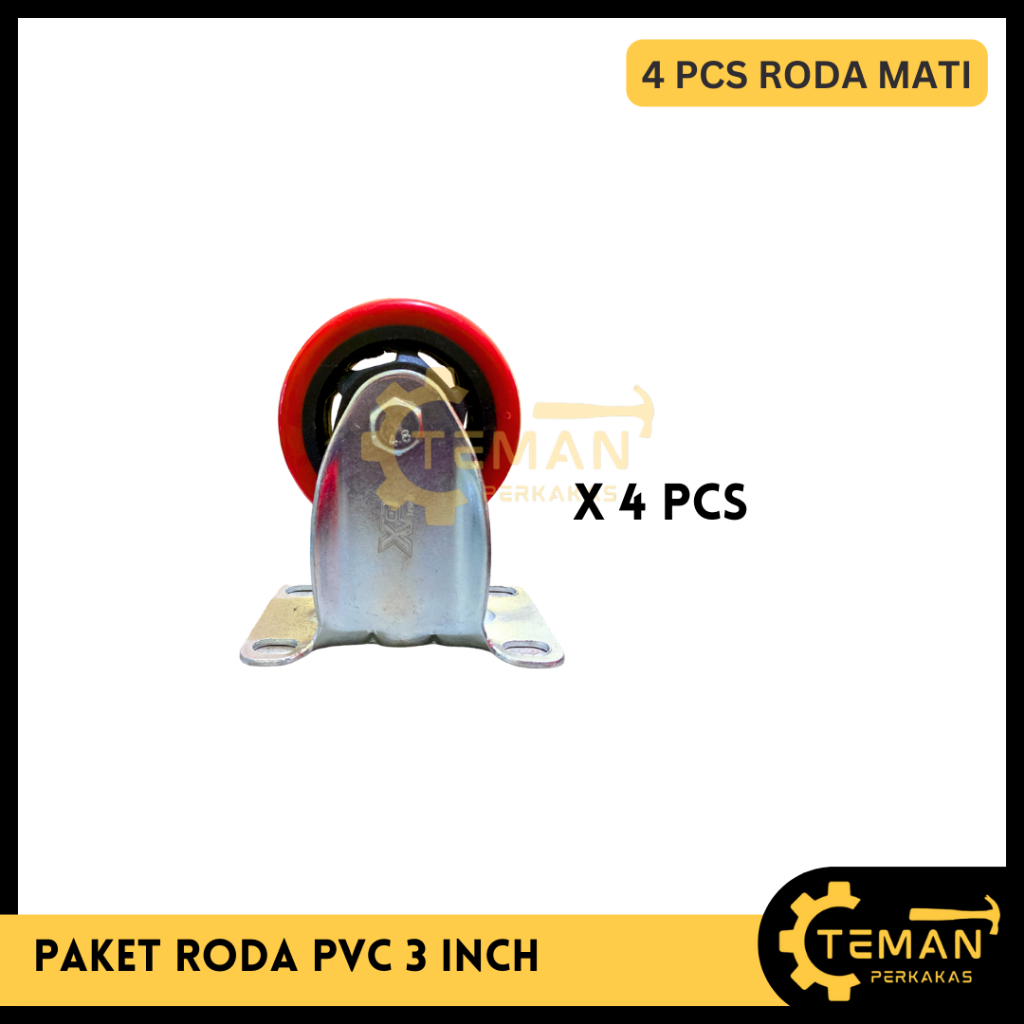 PAKET RODA PVC 3 INCH ISI 4 PCS / PAKET SET RODA TROLLEY 3" MATI HIDUP REM / RODA PVC MERAH SET RODA TROLI