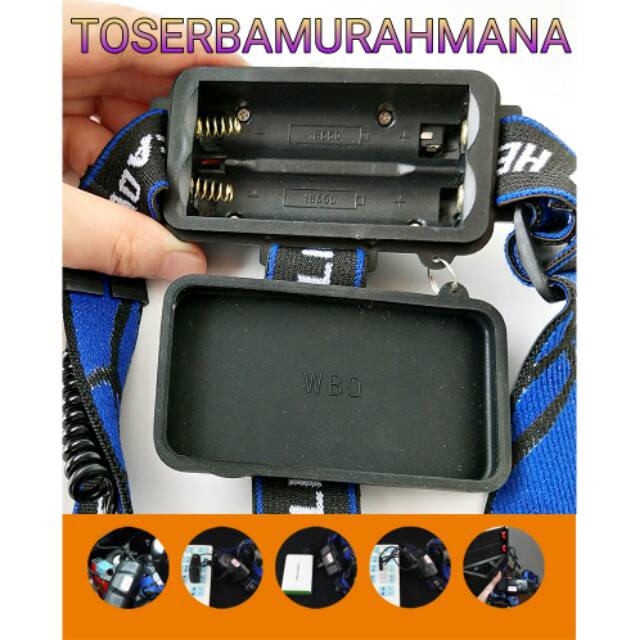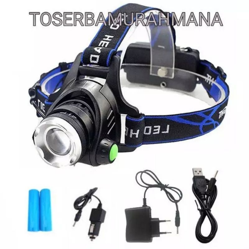 PAKET SENTER KEPALA HEADLAMP LED CREE XML T6 ZOOMABLE 3 CHARGER
