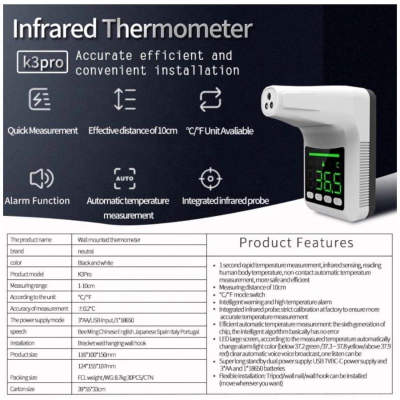 PAKET SET THERMOMETER TEMBAK STANDING TERMOGUN SENSOR INFRA MERAH INFRARED NON KONTAK ALAT UKUR SUHU TUBUH ABNORMAL DIGITAL OTOMATIS DENGAN TRIPOD