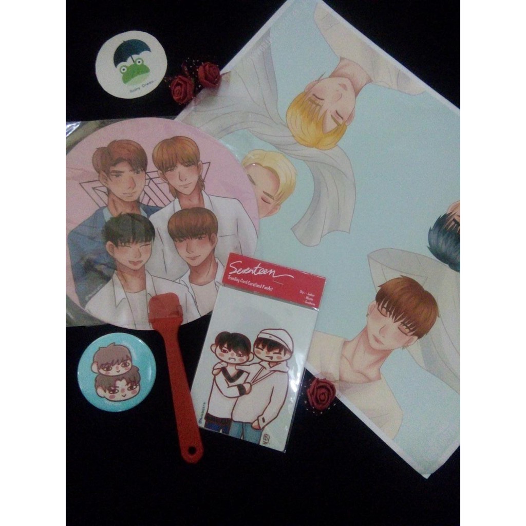 PAKET SEVENTEEN FanArt Merchandises (HAND FAN, BUTTON PIN, TRADING CARD, POSTER)