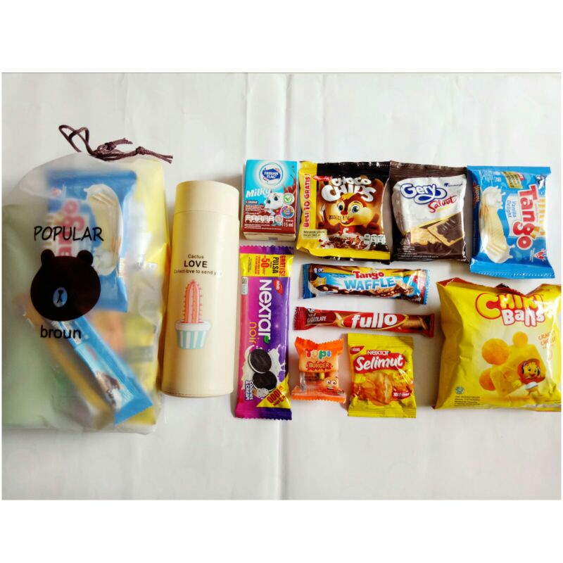 PAKET SNACK ULANG TAHUN ANAK BOTOL MINUM GOODIE BAG ULTAH ANAK / SNACK HADIAH / PAKET SANTUNAN PAKE TAS / PAKET SNACK ULTAH BOTOL MINUM KACA