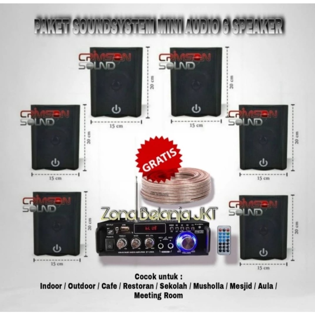 PAKET SOUND SPEAKER CRIMSON 6 TITIK CAFE RESTORAN KANTOR DAN SEKOLAHAN AMPLI USB Paket Karaoke Sound System
