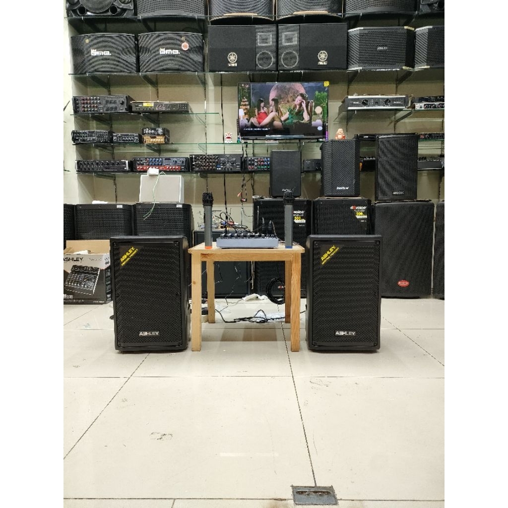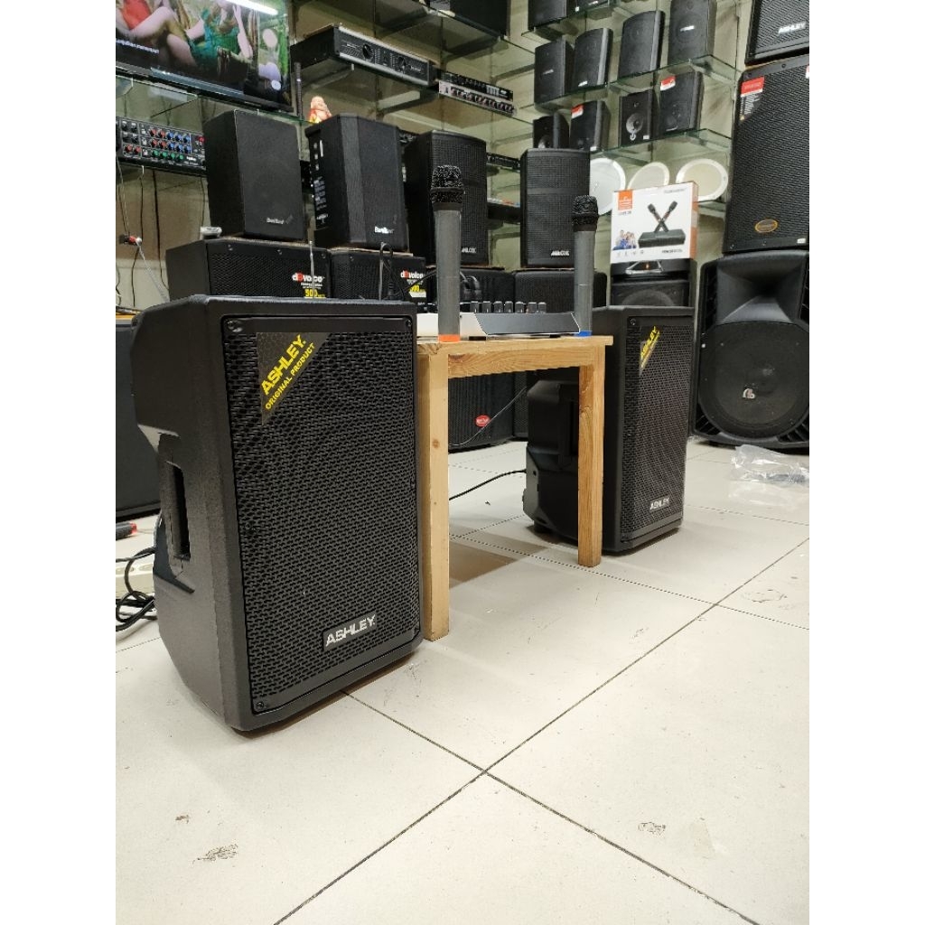 PAKET SOUND SYSTEM INDOOR OUTDOOR SPEAKER ASHLEY 10 INCH AKTIF MIXER ASHLEY MURAH BERKUALITAS GARANSI