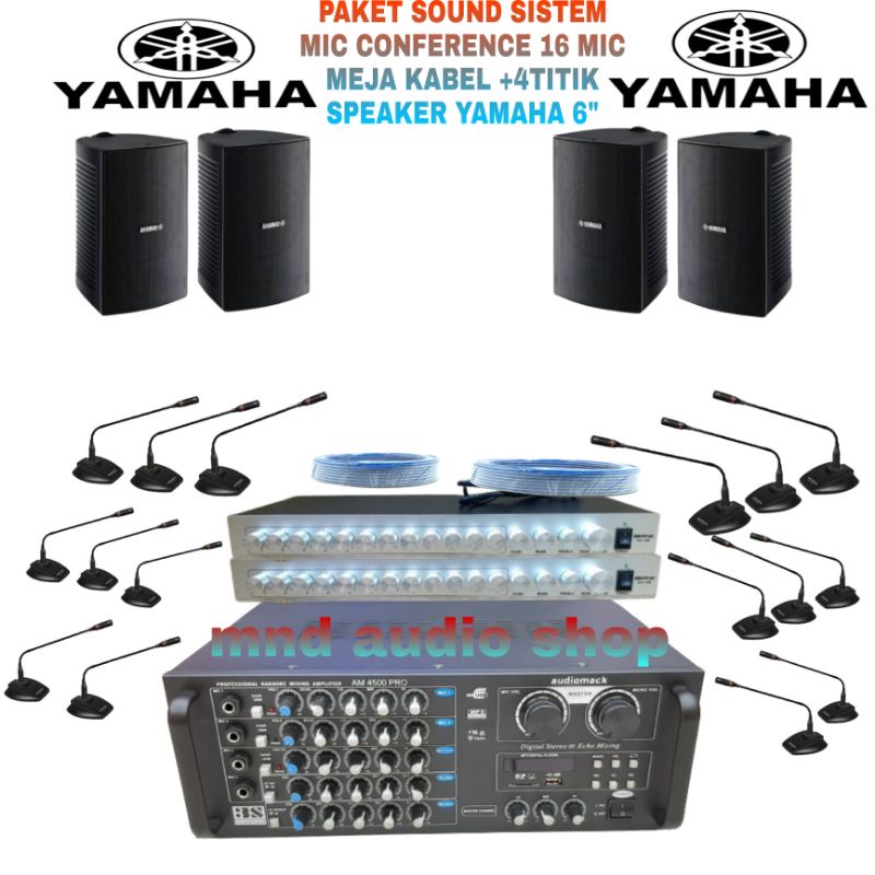 PAKET SOUND SYSTEM MIC CONFERENCE MIC MEJA KABEL 16MIC +SPEAKER YAMAHA VS 6 4TITIK