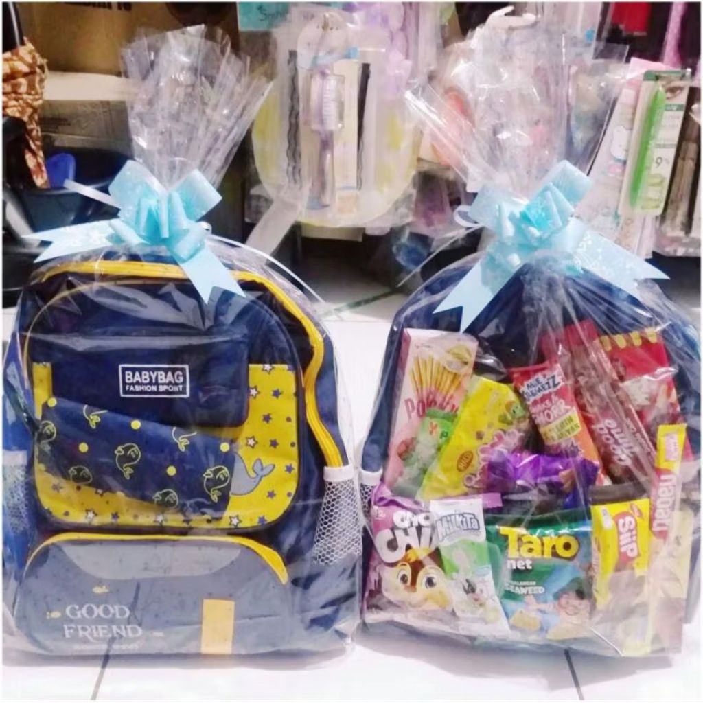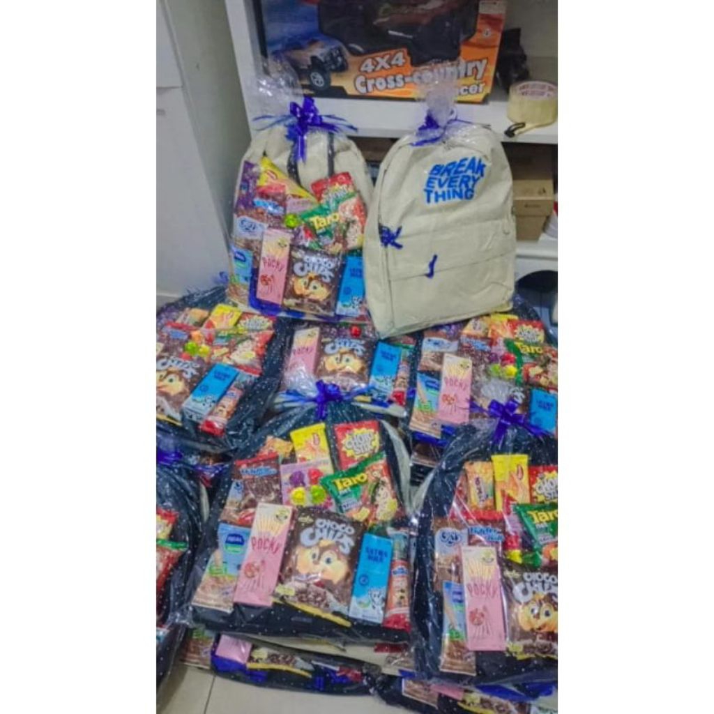 PAKET SOUVENIR SNACK + TAS RANSEL SEKOLAH ANAK SD / PARCEL SNACK + TAS / GOODIEBAG ANAK / PAKET ULTAH ANAK / PAKET SANTUNAN / PAKET SNACK ULANG TAHUN ANAK PAKET HEMAT / PAKET ULTAH DLL