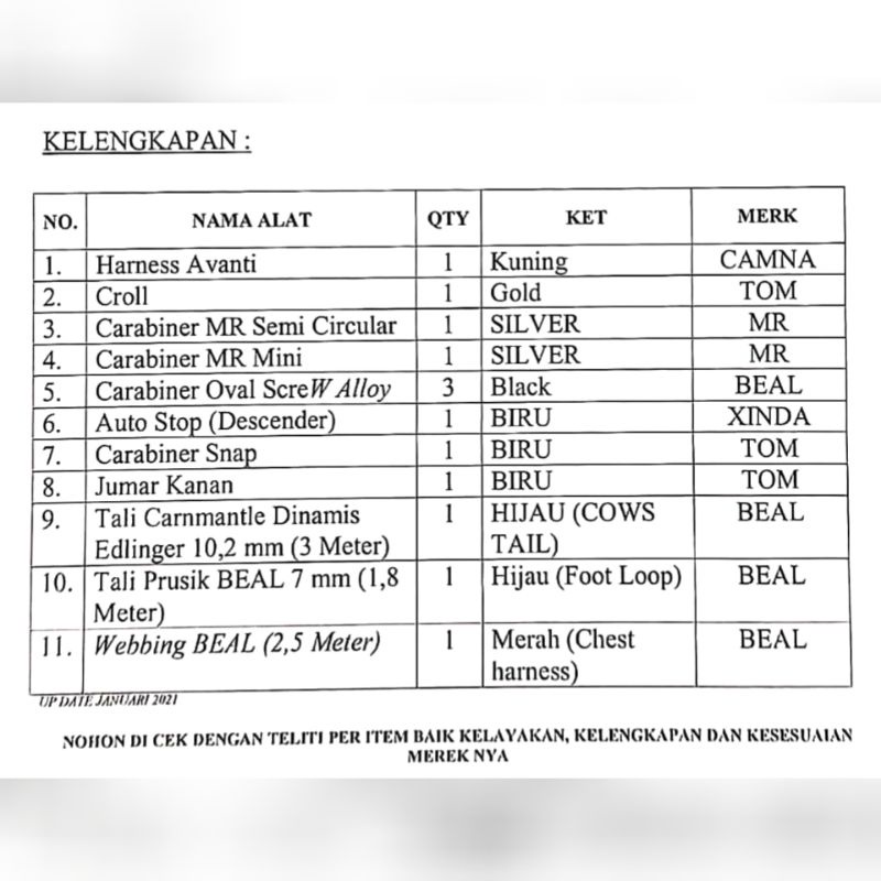 PAKET SRT SET. ALAT SAFETY UNTUK CAVING, CLIMBING, REPLING, RESCUE