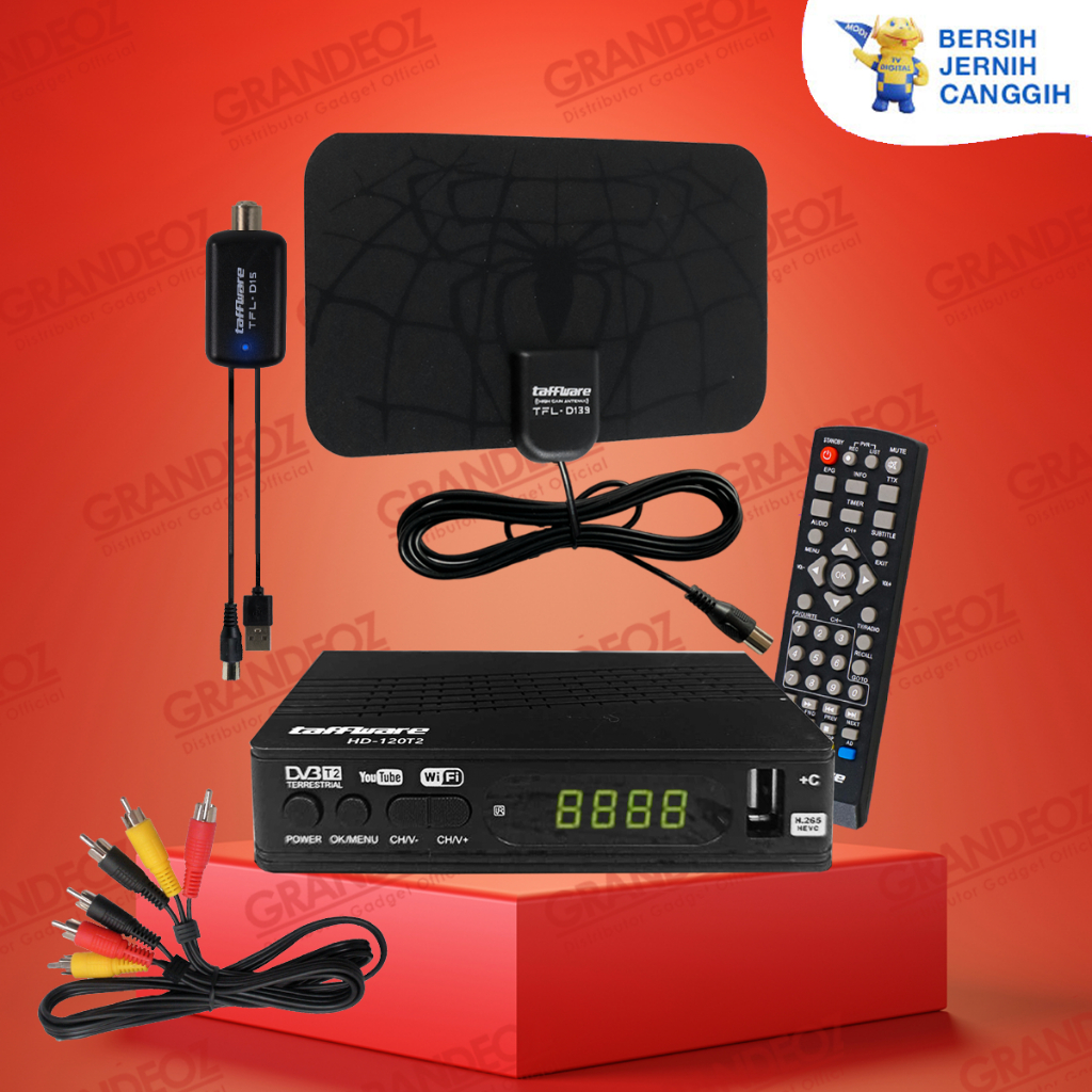 PAKET Set Top Box + Antena TV Digital Booster Amplifier Analog Tabung STB Smart Tuner DVB-T2 Satellite TV Receiver Youtube H.265 4K Wifi Hdmi High Gain Anten Full HD Antenna HBO TCL LG Polytron Sharp