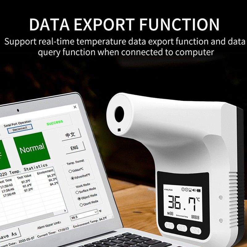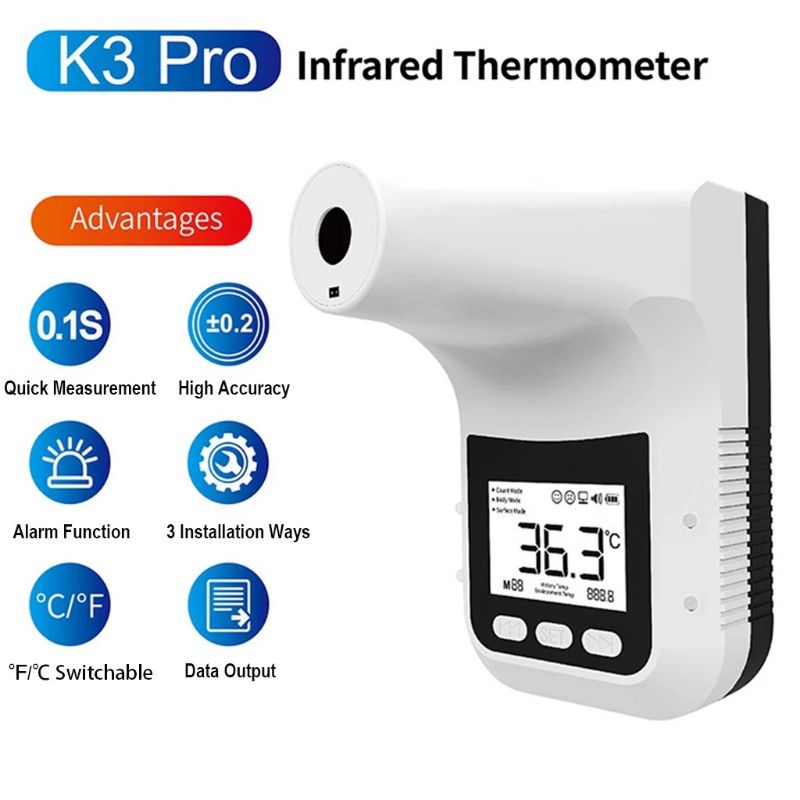 PAKET THERMOMETER TEMBAK INFRARED SENSOR INFRA MERAH TERMOGUN STANDING DIGITAL OTOMATIS NON KONTAK TRIPOD UNTUK SEKOLAH MALL KANTOR KAMPUS FASUM