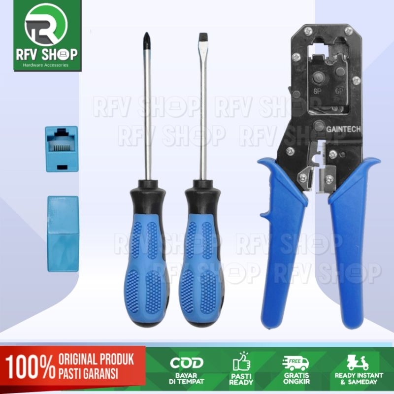 PAKET TOOLKIT 7 IN 1 NETWORK CABLE REPAIR TOOL KIT SET GT-580 Crimping Tool, Lan Tester, Stripper Tool , Pouch Tool