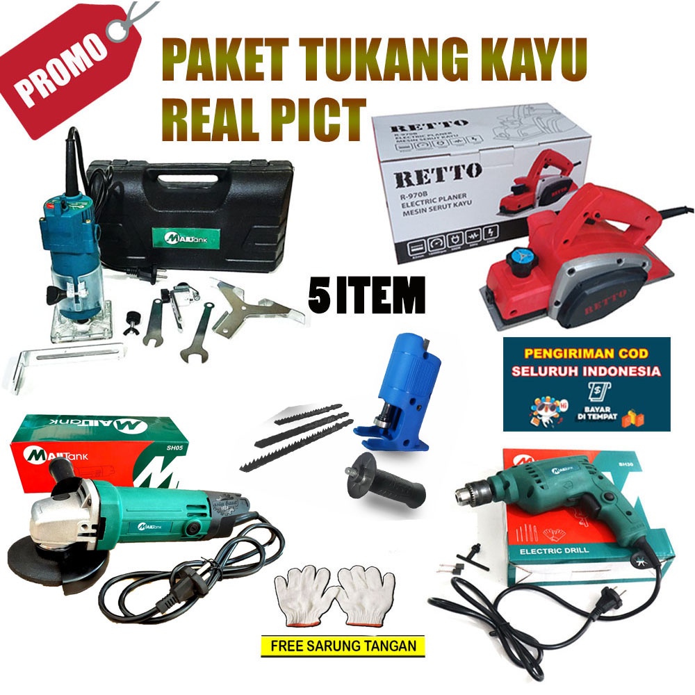 PAKET TUKANG KAYU , SERUT ,BOR 10MM, GERINDA Mailtank,PROFIL TRIMMER mailtank SATU SET