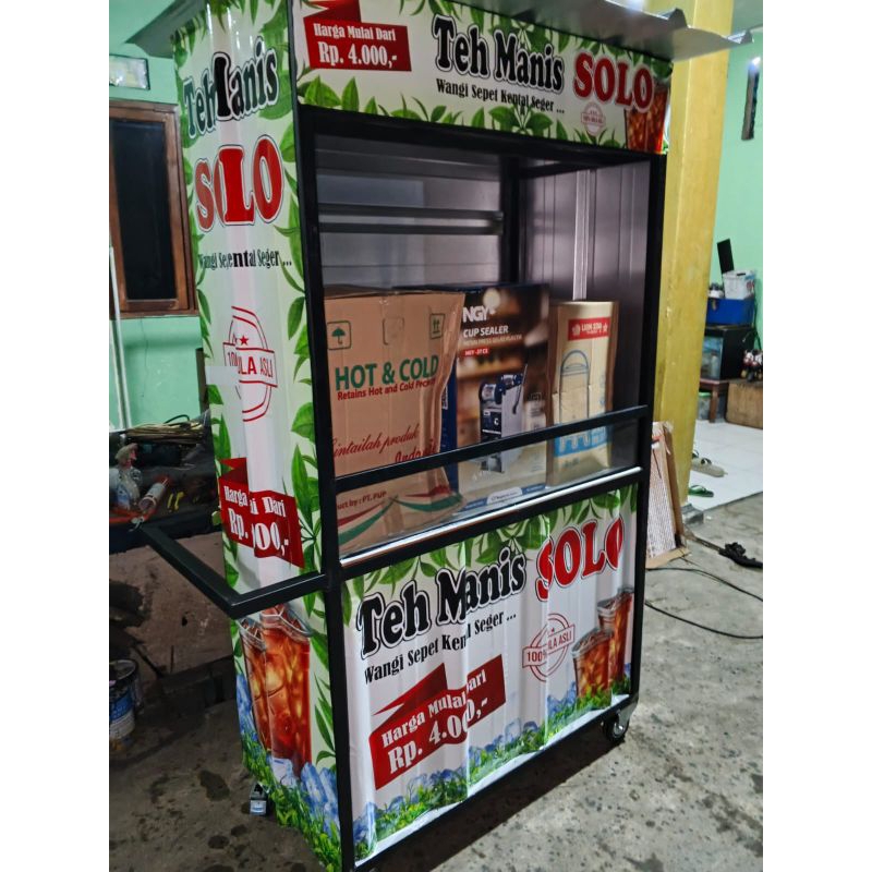 Gerobak Jualan Es Teh Solo Murah - Booth Es Teh Paket Usaha Besi Galvanis Siap Jualan