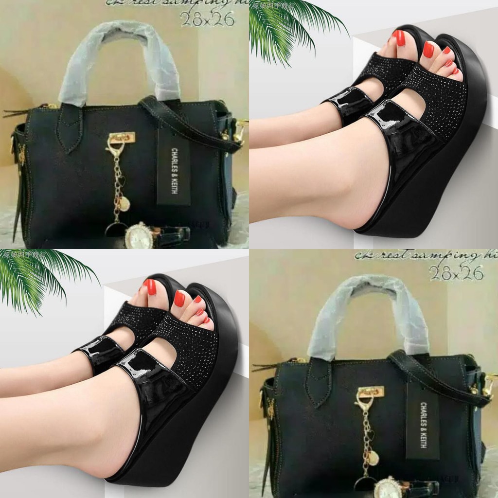 PAKET WEDGES SANDAL DAN TAS CEKA NIA