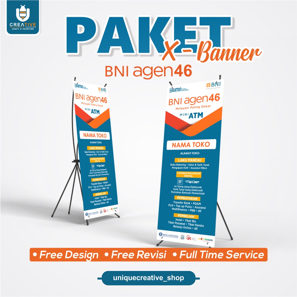 PAKET X-BANNER KOMPLIT (Banner & Standing) BNI Agen 46 Ukran.60x160cm