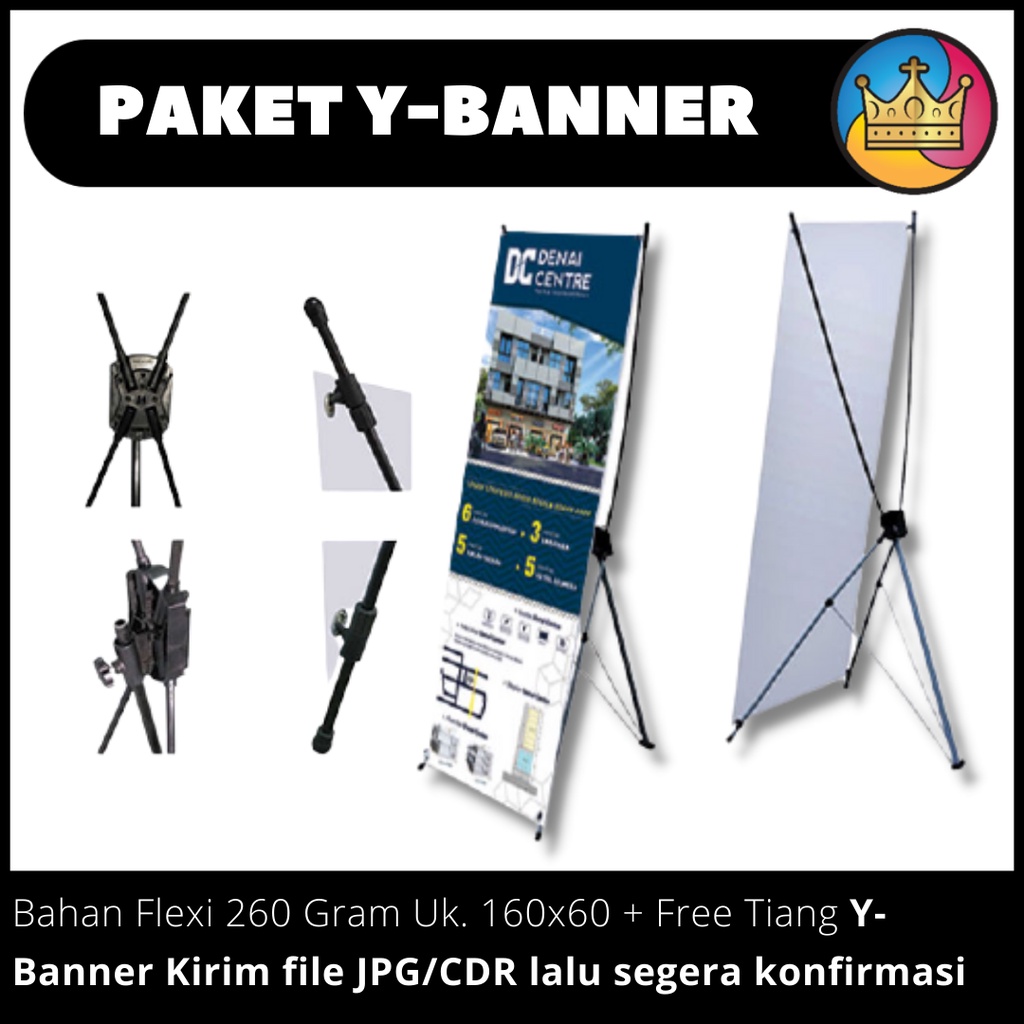 PAKET Y-Banner YBanner Y Banner Print Spanduk Flexi Plus Tiang Ukuran Standar 60x160