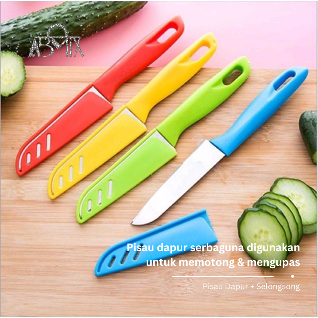 PALING MURAH!! Pisau Dapur Bersarung Pisau Sayur Pisau Buah Pisau Besi Stainless Steel Premium Super Tebal