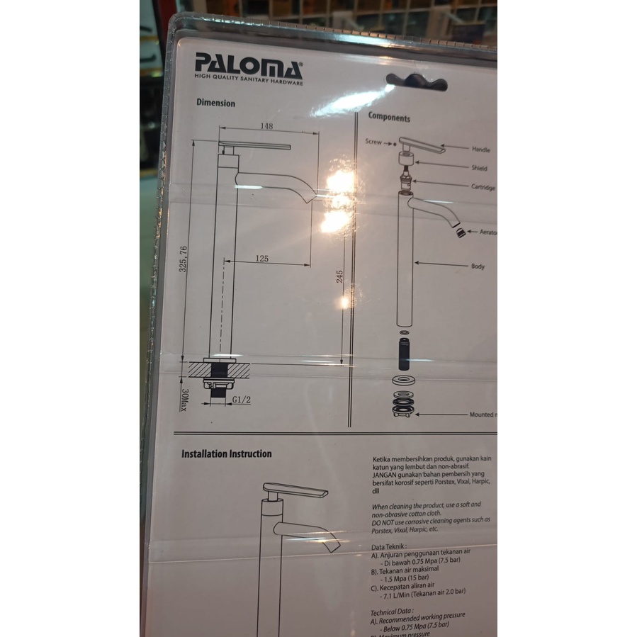 PALOMA FCP 9683 KERAN WASTAFEL CUCI TANGAN KRAN AIR DINGIN MATTE BLACK KRAN MEJA TANAM