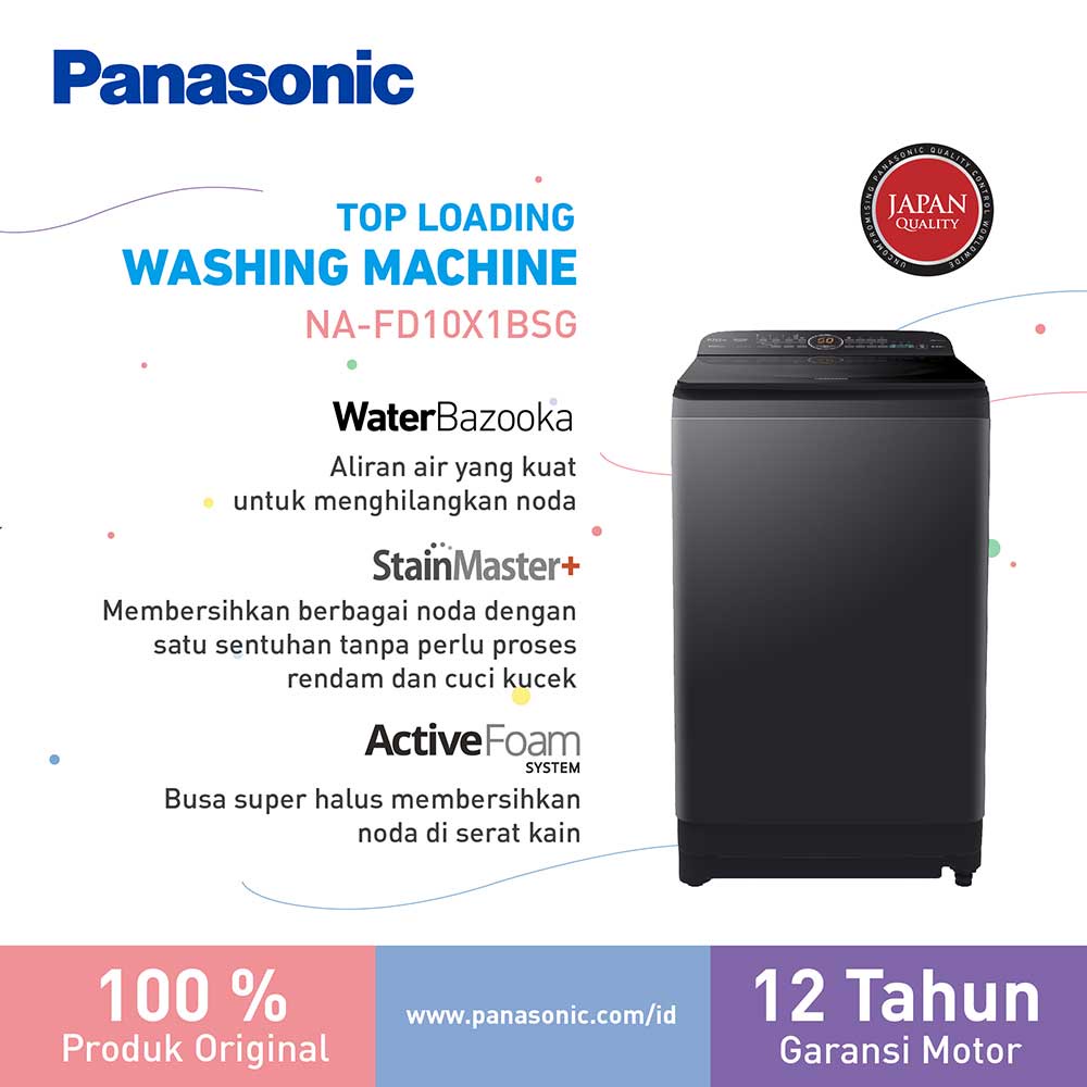 PANASONIC Mesin Cuci 10 Kg NA-FD10X1BSG Mesin Cuci Panasonik 10kg NA-FD10XB1BSG Mesin Cuci Tabung Atas 10kg
