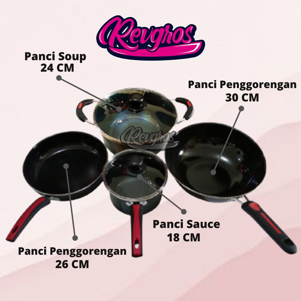 PANCI COOKWARE SET ENAMEL 4 PCS / PANCI SET 3 UKURAN 1 TUTUP KACA ENAMEL / PANCI SET ENAMEL 4 PCS GSF
