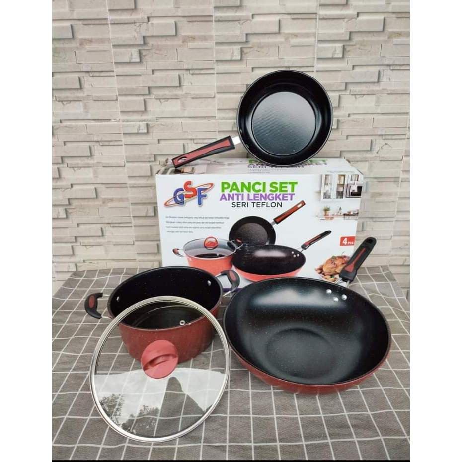 PANCI SET GSF G-2429 / PANCI SET ANTI LENGKET GSF 2429 / PANCI SET TEFLON GSF 2429 / PANCI SET SERI TEFLON GSF 2429 / PANCI SET 4 PCS / PANCI 4PCS GSF G-2429 / PANCI SET GSF 4 PCS GSF G-2429 / PANCI WAJAN PENGGORENGAN ANTI LENGKET GSF G-2429