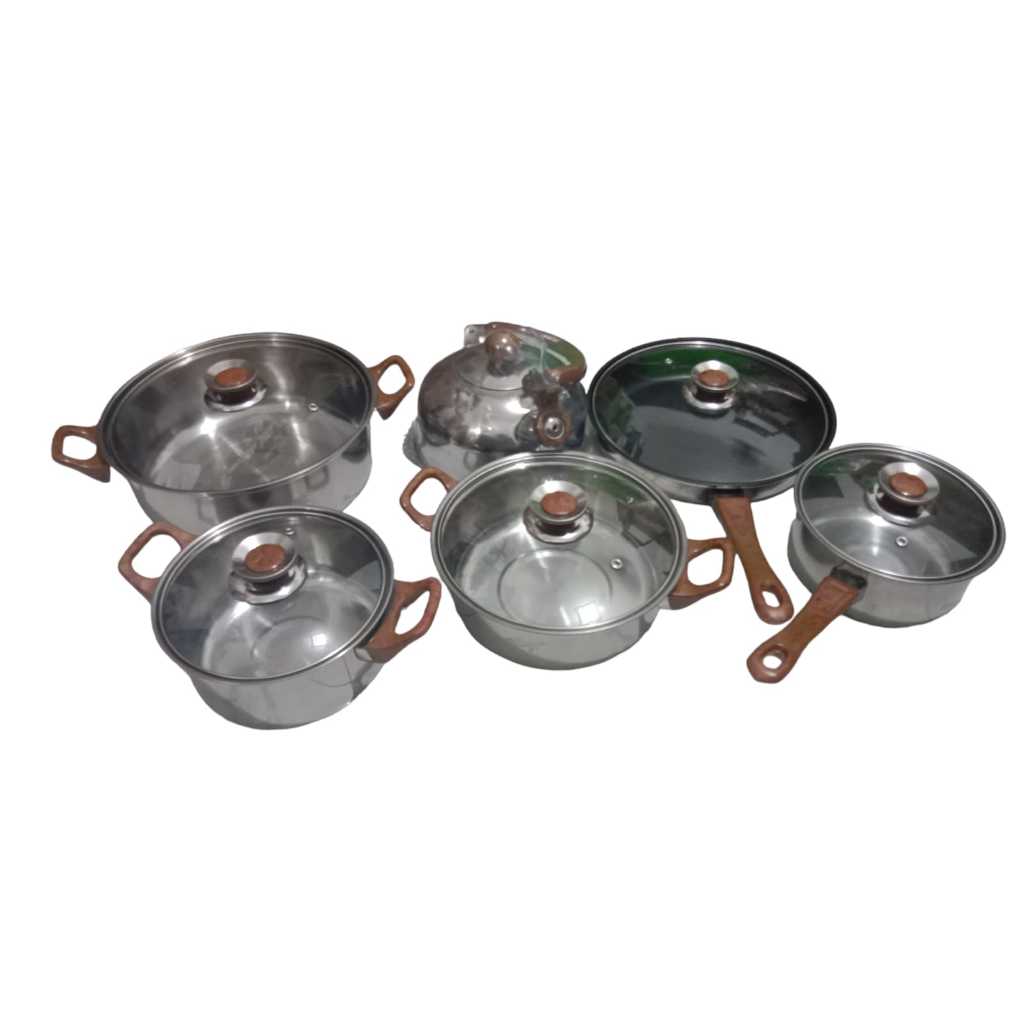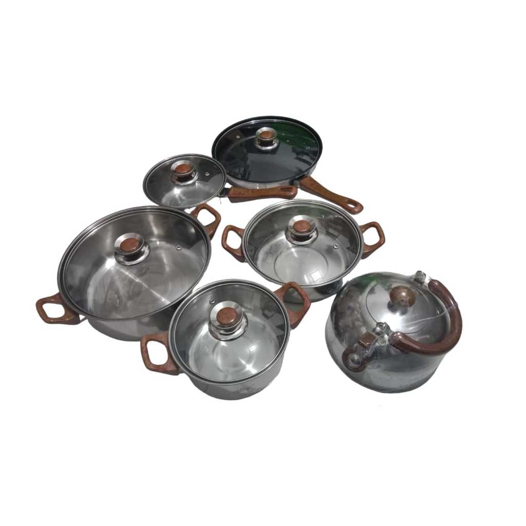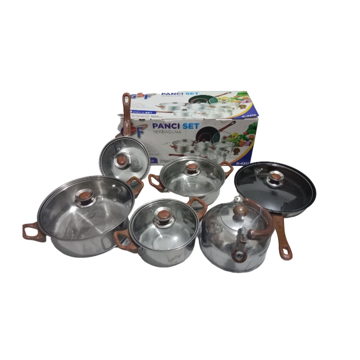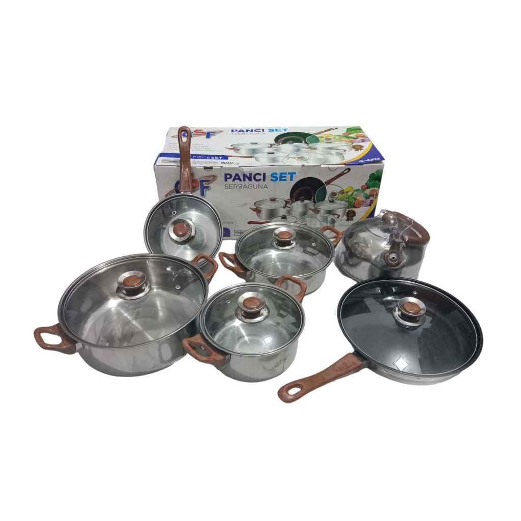 PANCI SET GSF G-4312 / PANCI SET SERBAGUNA 12PCS GSF G 4312 / PANCI WAJAN TEKO SET 12 PCS STAINLESS STEEL WITH TUTUP KACA / PANCI 12 SET / PANCI WAJAN TEFLON 12SET + TEKO ANTI KARAT / PANCI SET STAINLESS STEEL