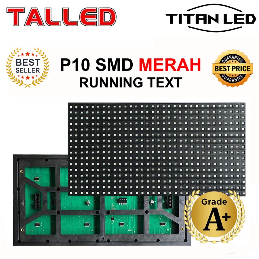 PANEL MODUL RUNNING TEXT P10 LED OUTDOOR TALLED ORIGINAL SMD DIP LED MERAH KUNING BIRU HIJAU PUTIH