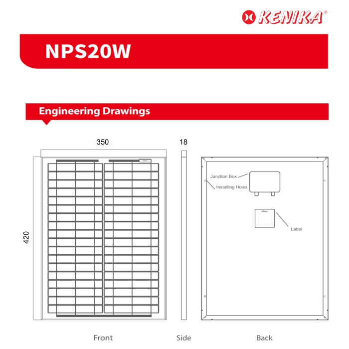 PANEL SURYA KENIKA 20WP / 18V PV POLYCRYSTALLINE SOLAR MODULE