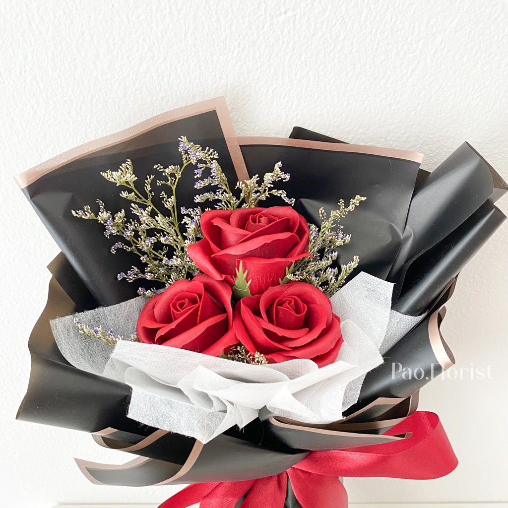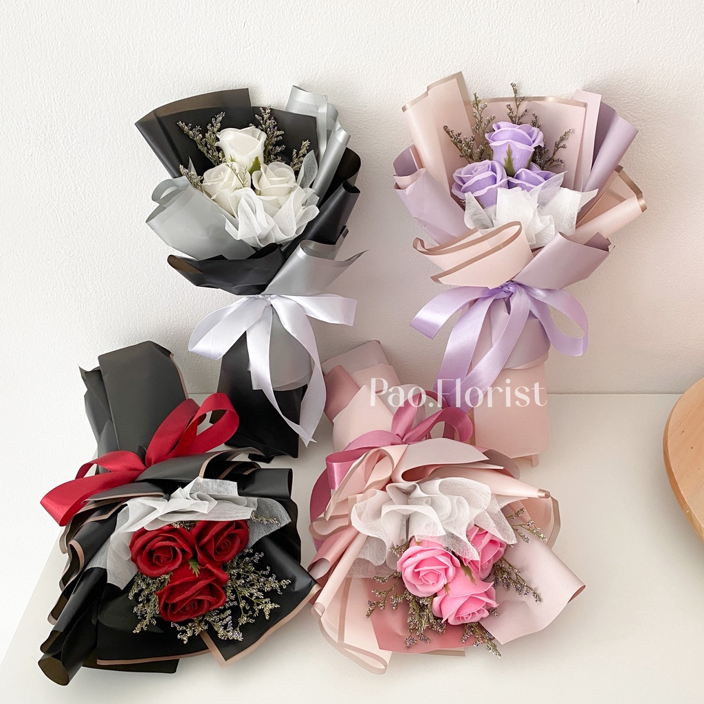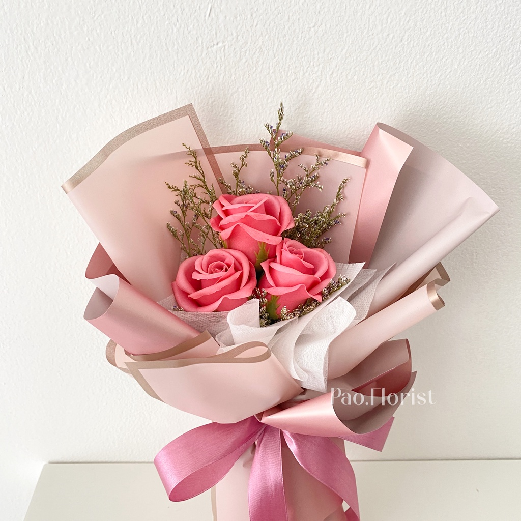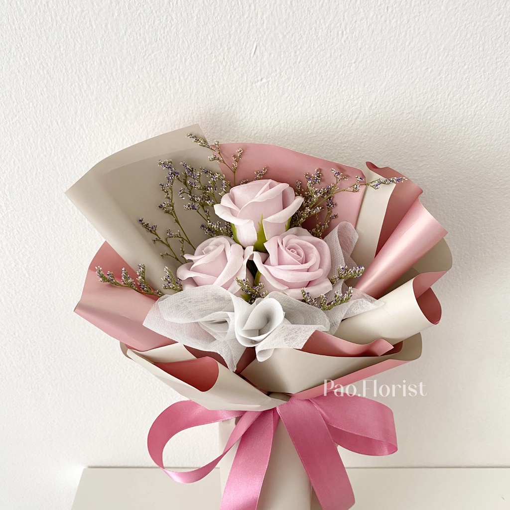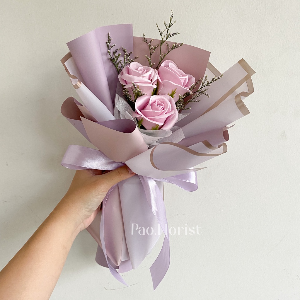 PAO FLORIST 3pcs Soap Flower Buket Bunga Sabun / Soap Flower Roses / Bouquet Wisuda / Mawar / Carnation / Bunga Kapas / Hadiah Anniversary / Flower Gift