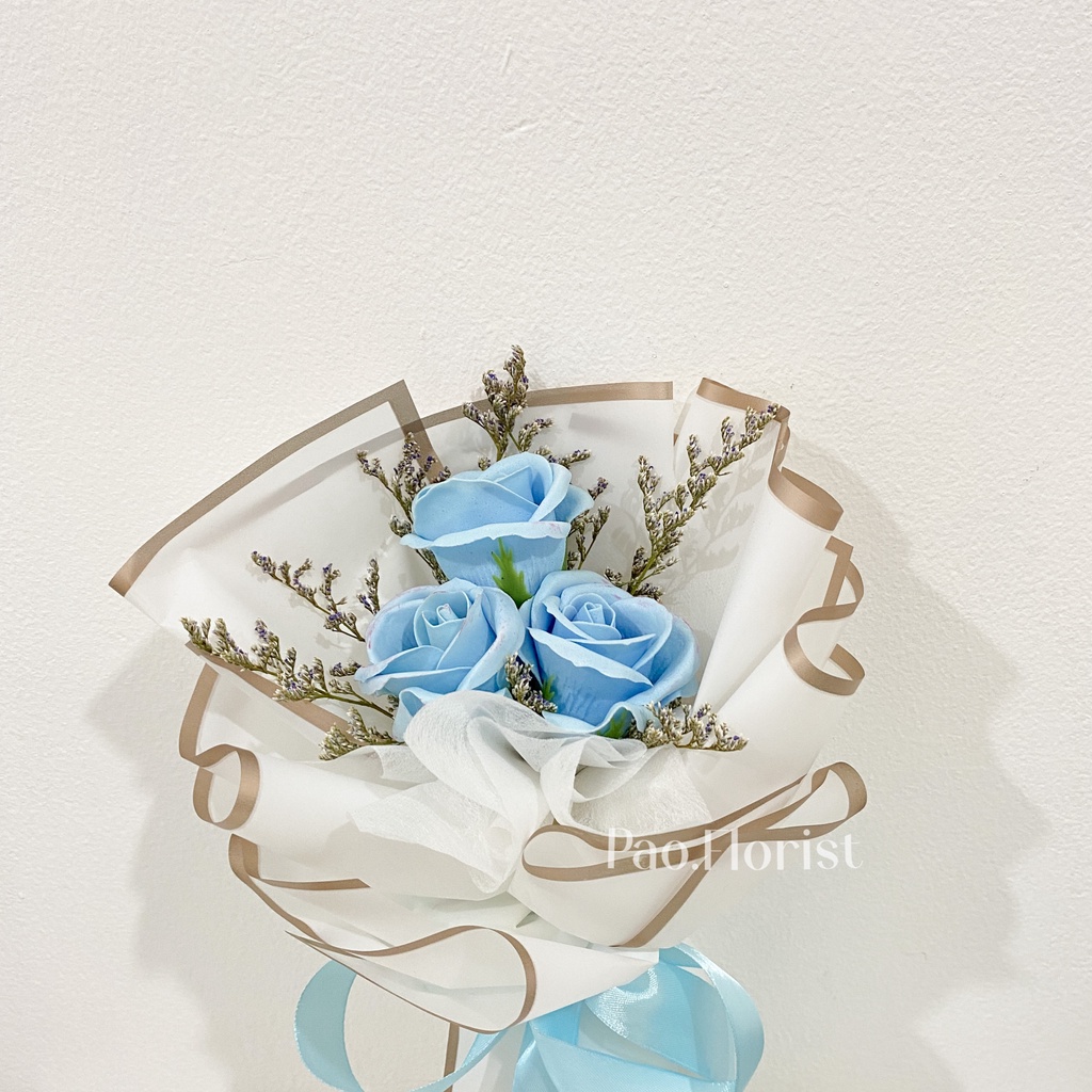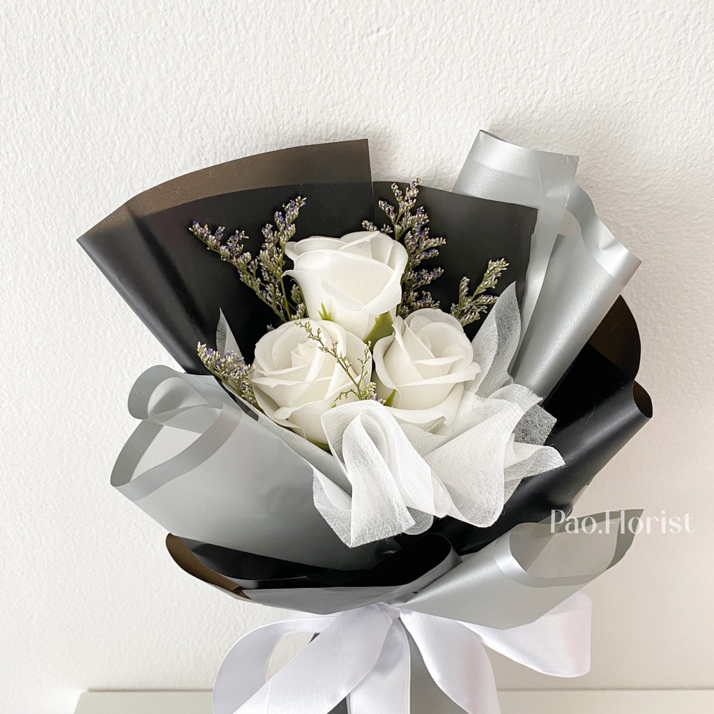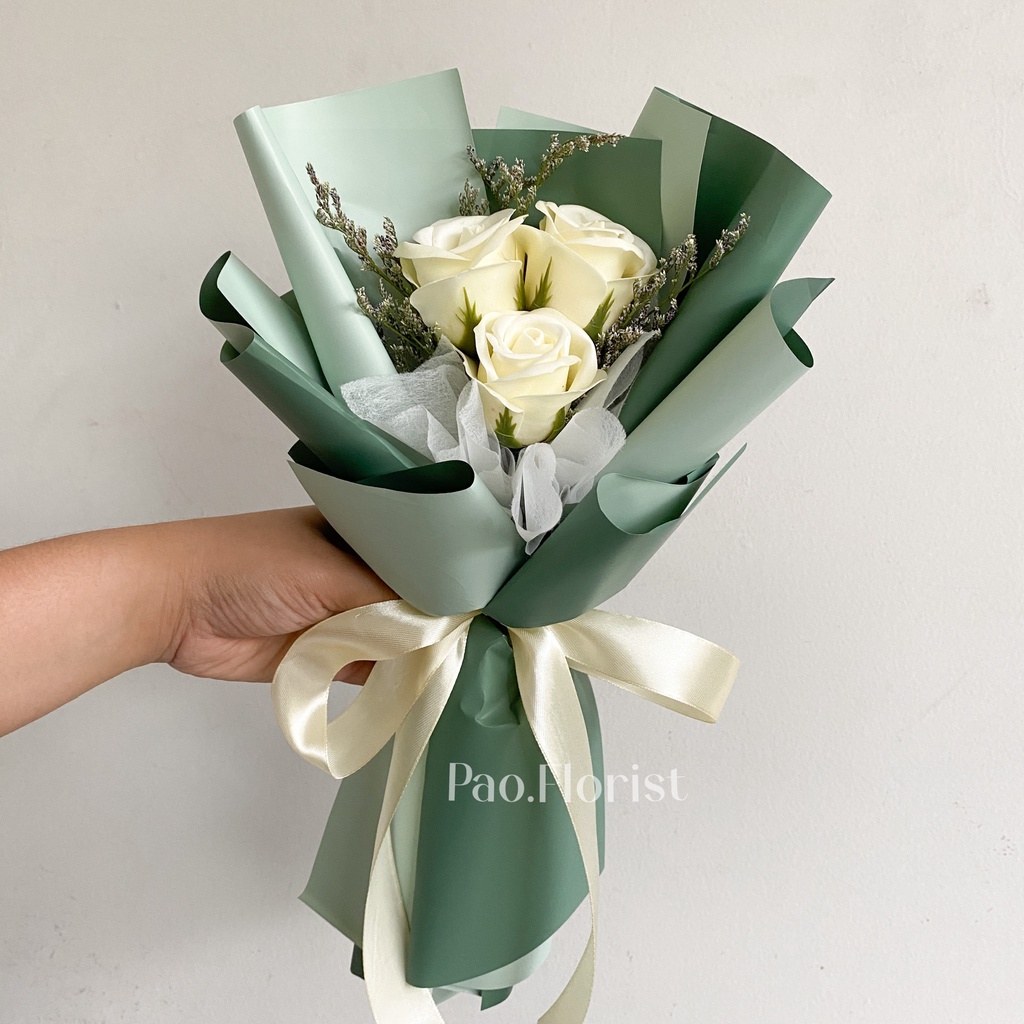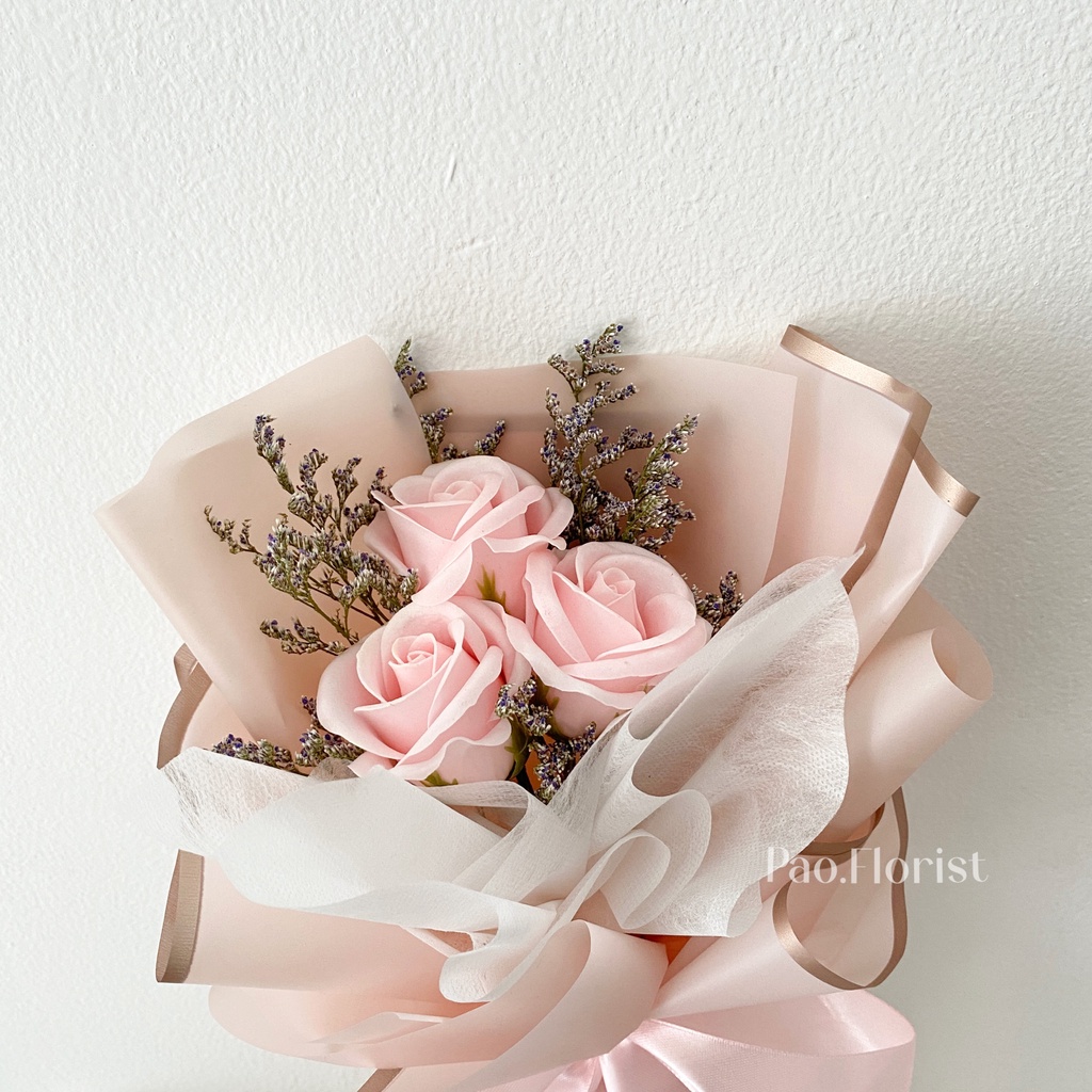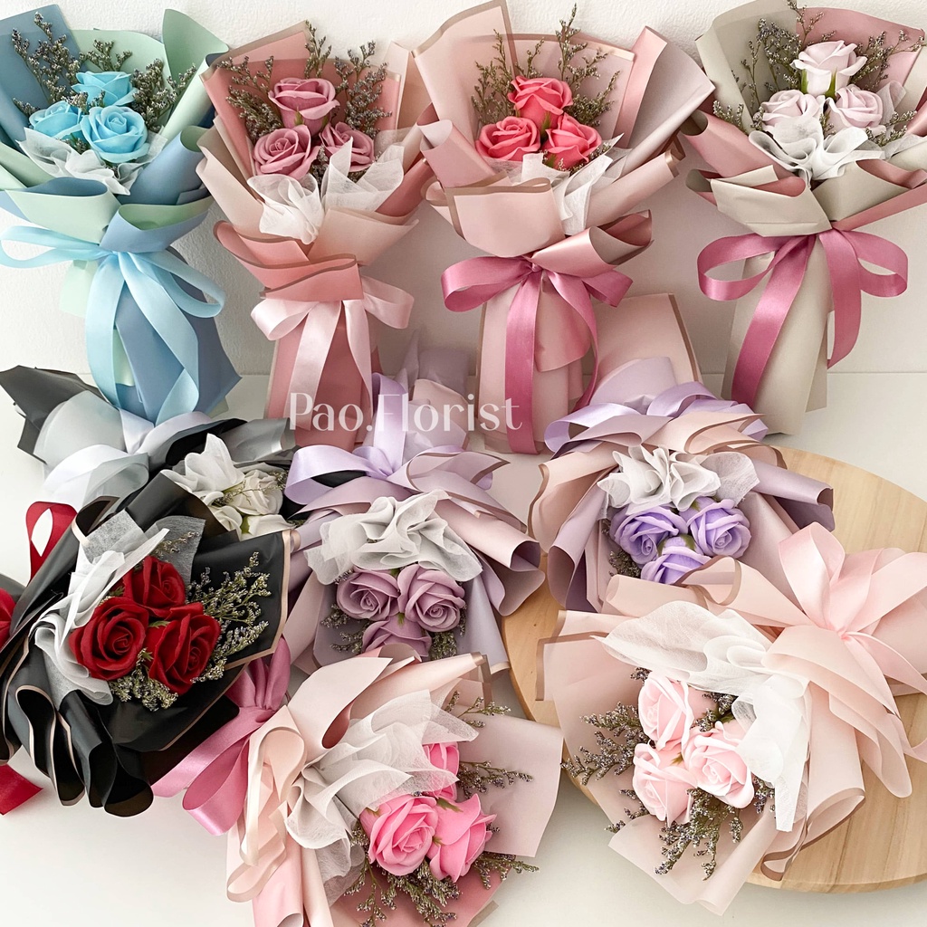 PAO FLORIST 3pcs Soap Flower Buket Bunga Sabun / Soap Flower Roses / Bouquet Wisuda / Mawar / Carnation / Bunga Kapas / Hadiah Anniversary / Flower Gift