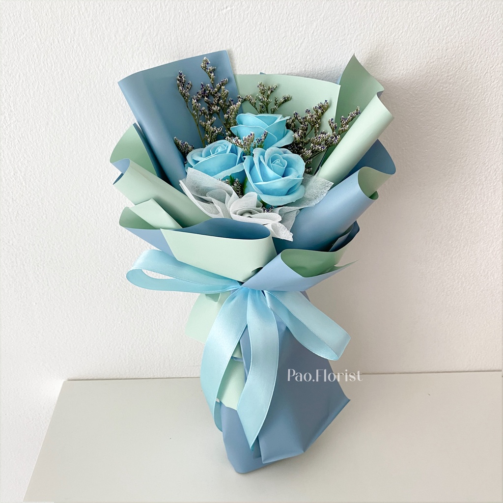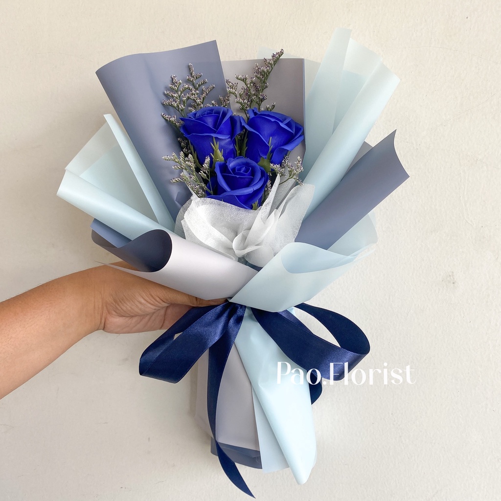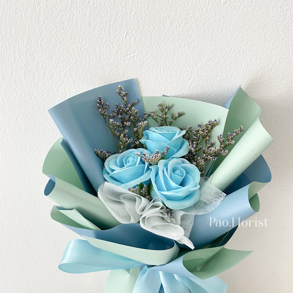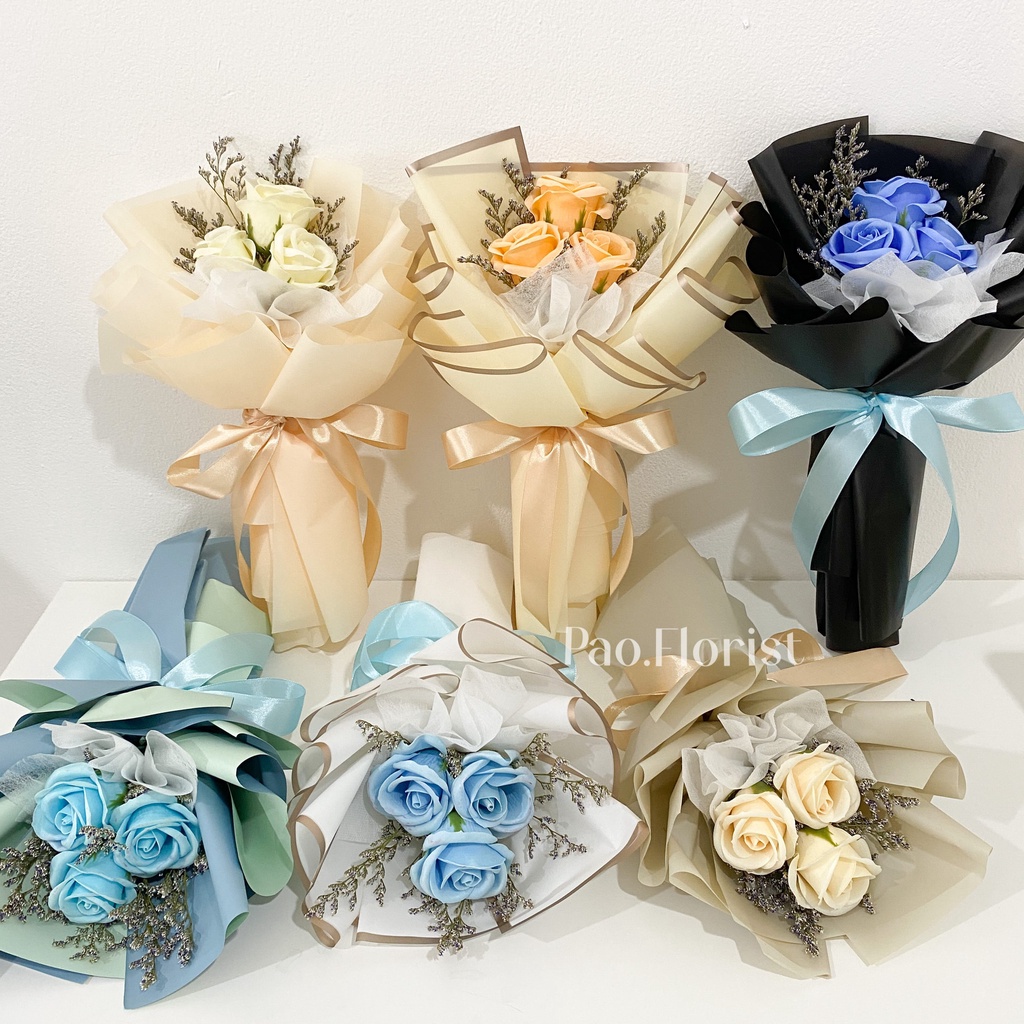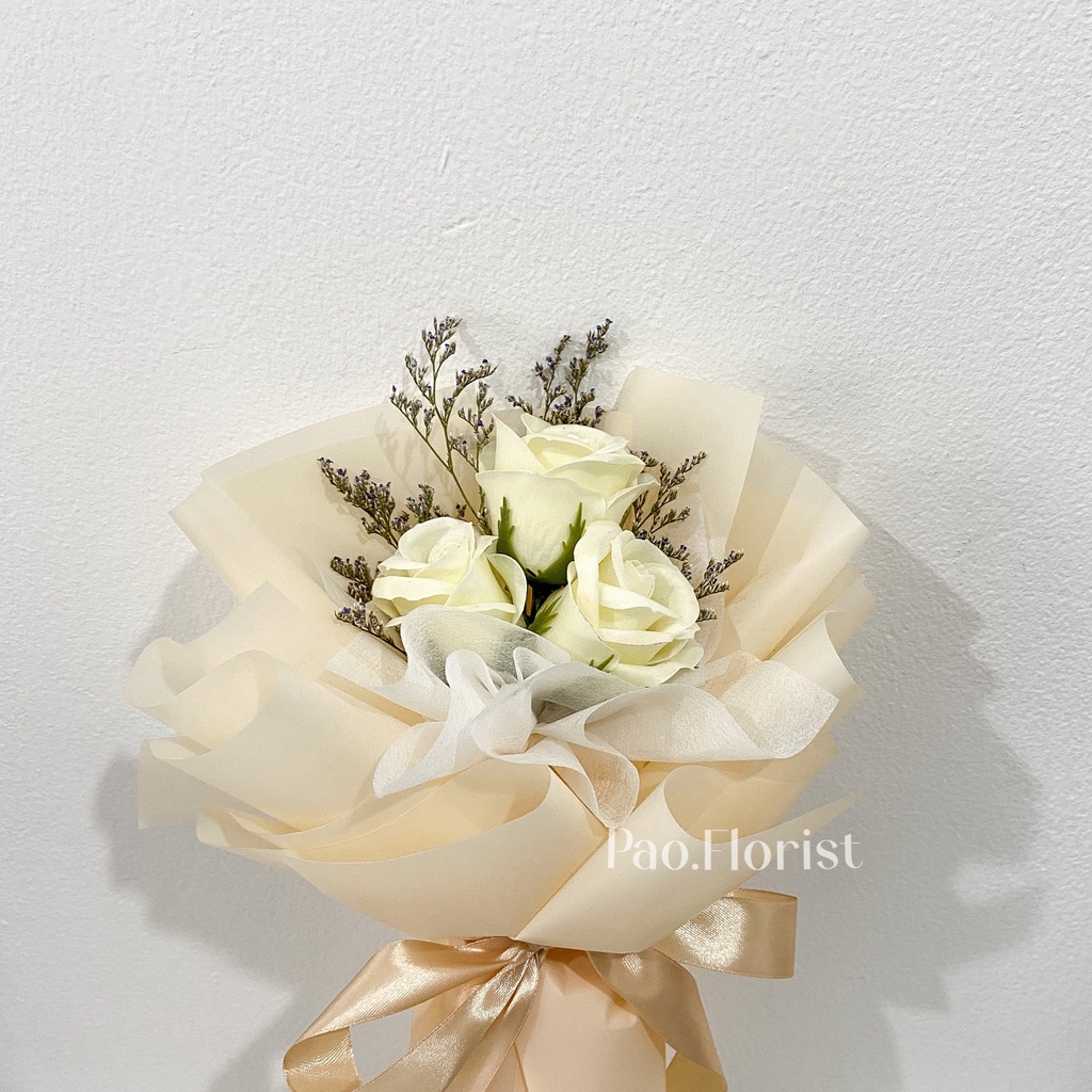 PAO FLORIST 3pcs Soap Flower Buket Bunga Sabun / Soap Flower Roses / Bouquet Wisuda / Mawar / Carnation / Bunga Kapas / Hadiah Anniversary / Flower Gift