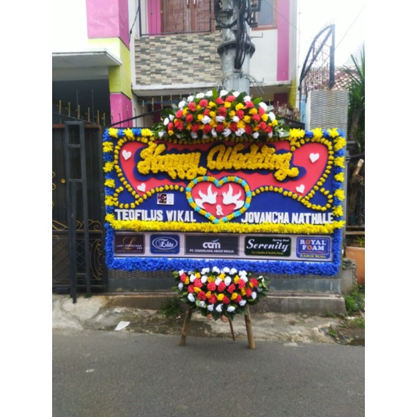 PAPAN BUNGA HAPPY WEDING BUNGA PALSU