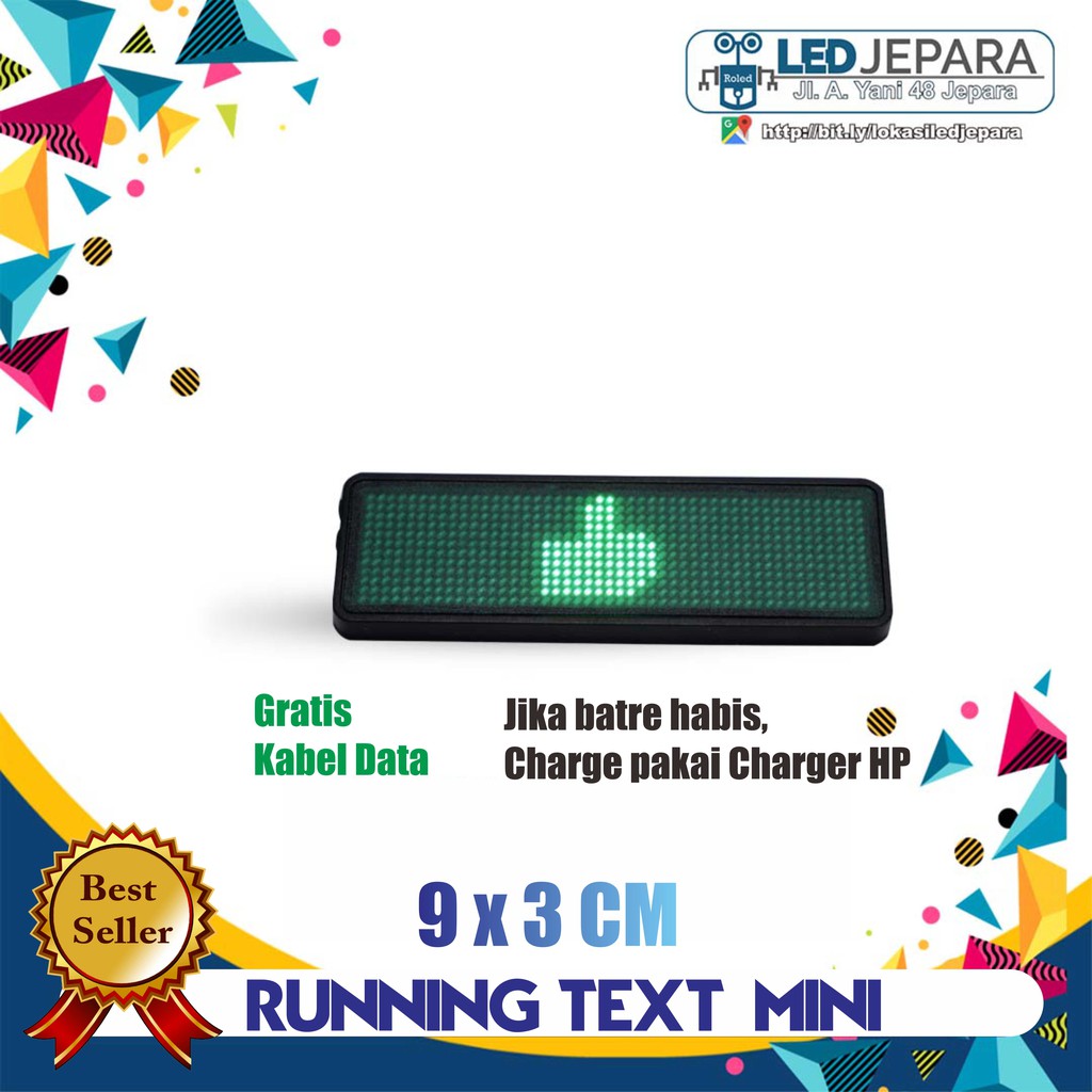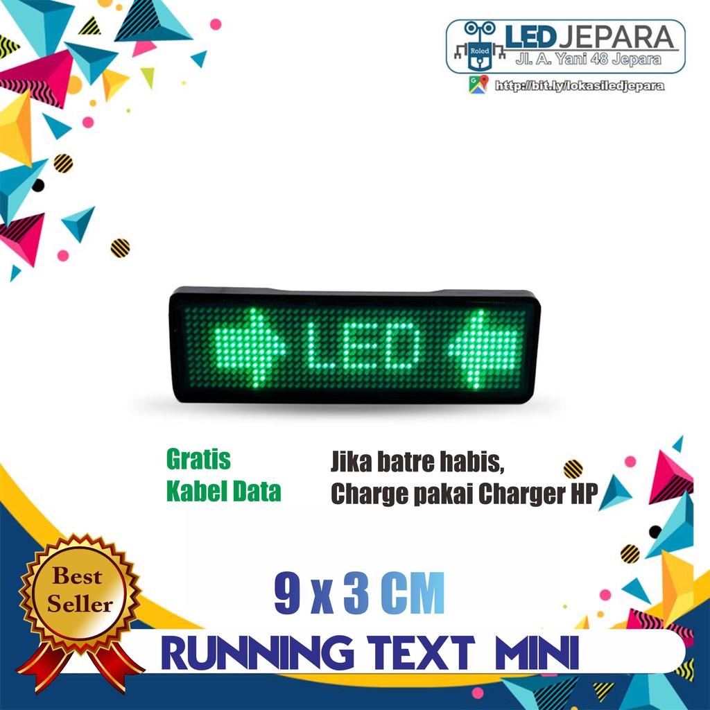 PAPAN NAMA DIGITAL LED TULISAN BERJALAN RUNNING TEXT MINI NAMETAG