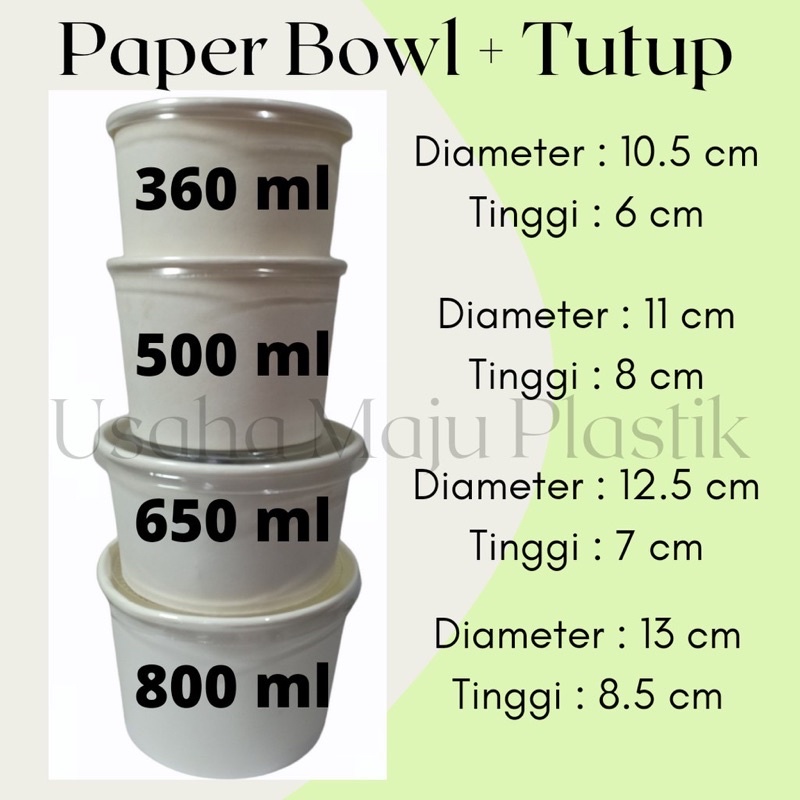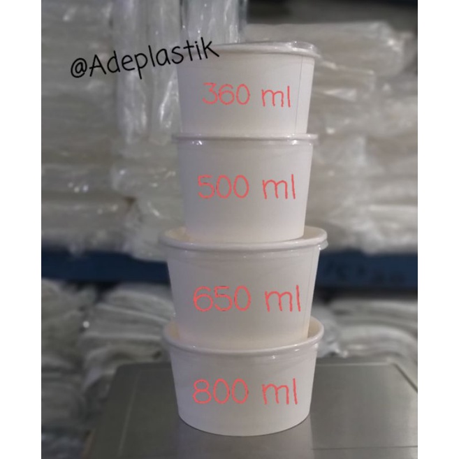 PAPER BOWL Putih Susu 360ml 500ml 650ml 800ml 1000 ml DENGAN ATAU TANPA TUTUP / Mangkok Kertas PAPERBOWL 12oz 17oz 22oz 27oz