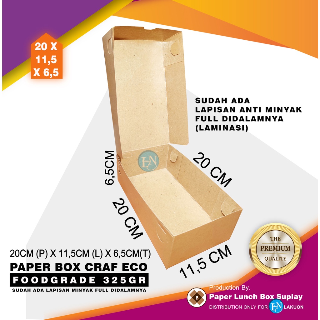 PAPER BOX CRAFT BROWN SERBA GUNA UKURAN 20CM(P) X 11,5CM(L) X 6,5CM(T) / KEMASAN MAKANAN / PAPER TAKE AWAY SUDAH ADA LAPISAN MINYAK TAHAN PANAS FULL