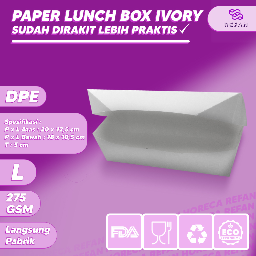 PAPER BOX LUNCH UKURAN L PERSEGI PANJANG - LUNCH BOX KERTAS PUTIH