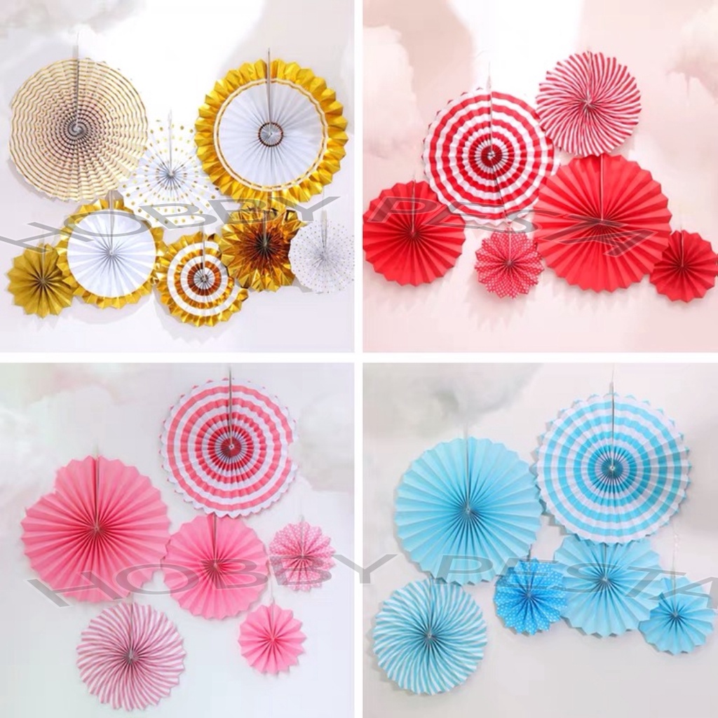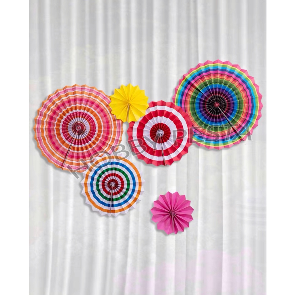 PAPER FAN DECORATION / PAPER FAN SET 6 IN 1 / PAPERFAN / PAPER FLOWER / BIRTHDAY DECORATION / DEKORASI ULANG TAHUN / FANCY DECORATION / HIASAN GANTUNG