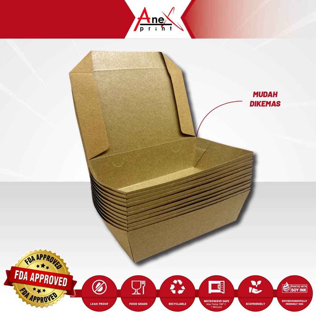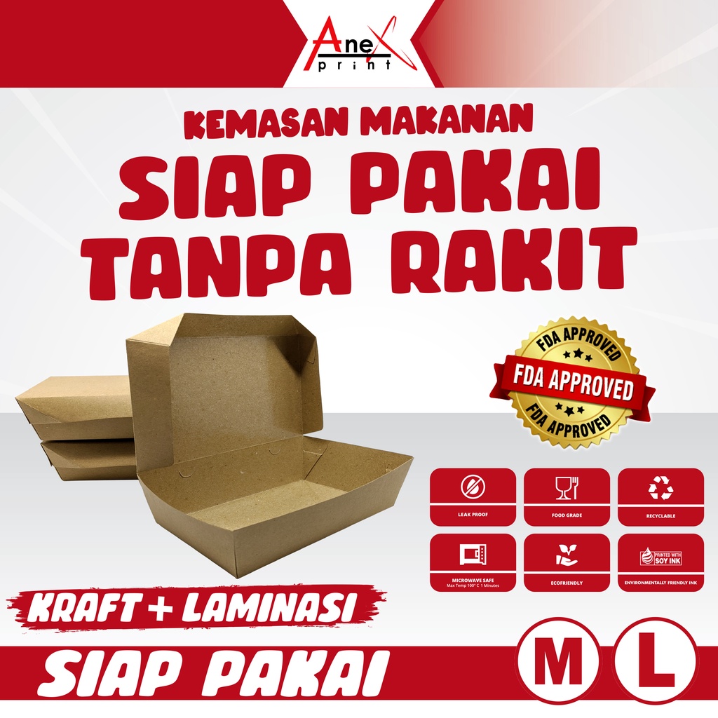 PAPER LUNCH BOX FOODGRADE SIAP PAKAI MURAH UKURAN M DAN UKURAN L / KOTAK MAKAN TANPA PERLU DI RAKIT BAHAN ECO KRAFT PAPER LAMINASI PE FOODGRADE / KEMASAN MAKANAN MURAH SIZE MEDIUM DAN SIZE LARGE FOODGRADE SIAP PAKAI / KOTAK MAKAN