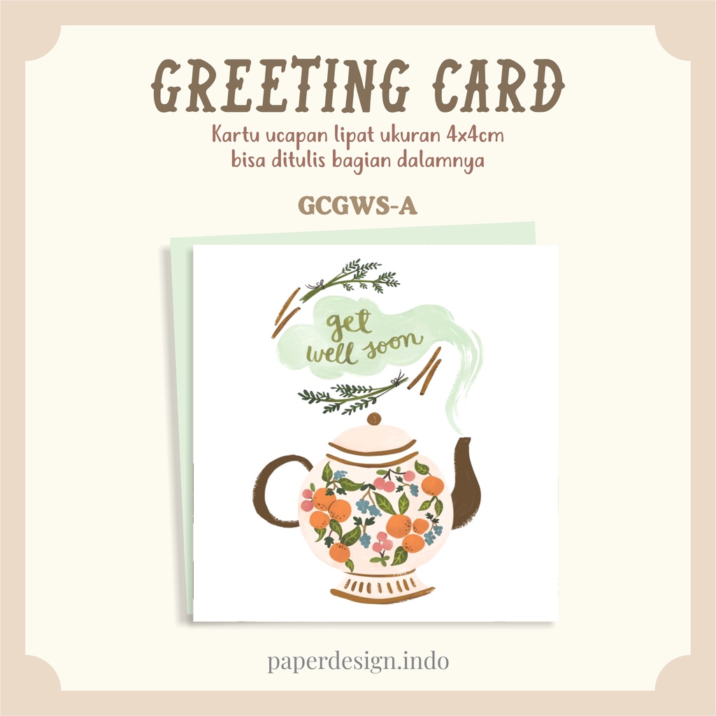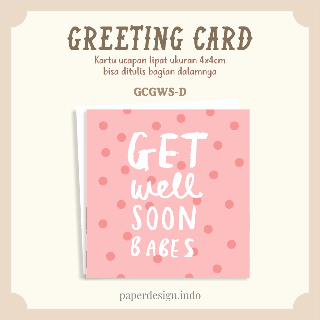 PAPERDESIGN.INDO - GET WELL SOON GREETING CARD FOLD | KARTU UCAPAN LIPAT MODEL GWS | AESTHETIC CARD