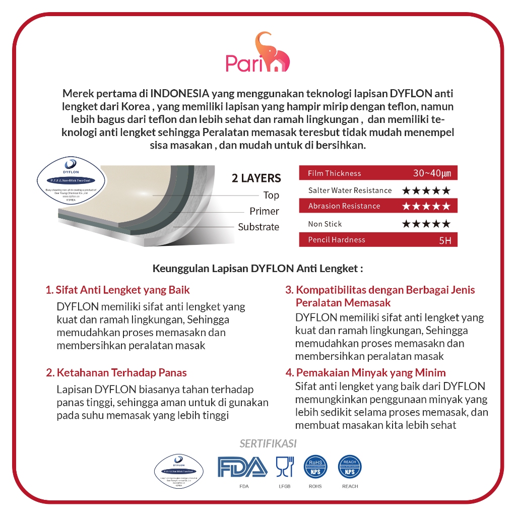 PARIM PR-8007 Grill Pan 26cm Square Grill pan Wajan anti Lengket Wajan Penggorenga Pemanggang Steak