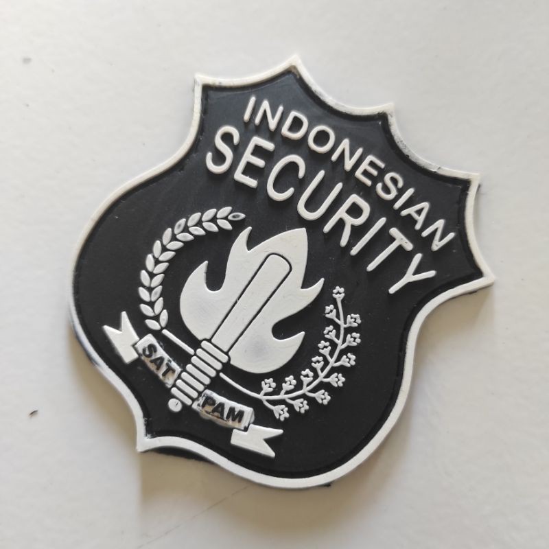 PATCH RUBBER LOGO SECURITY INDONESIA DASAR HITAM/TEMPELAN EMBLEM KARET SATPAM