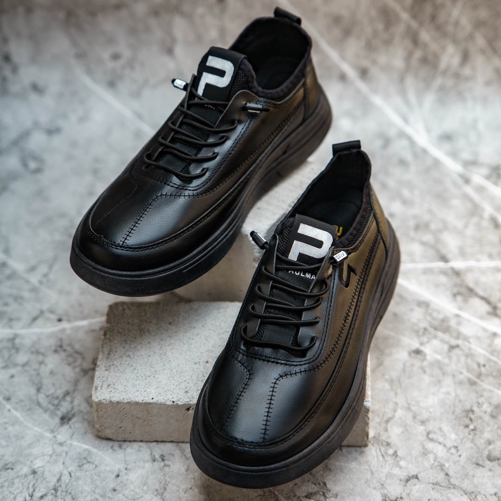 PAULMAY Ignite Pria Sepatu Sneakers Casual Kuliah Kerja Hangout Nyaman Ringan Anti-Slip Trendy Hitam