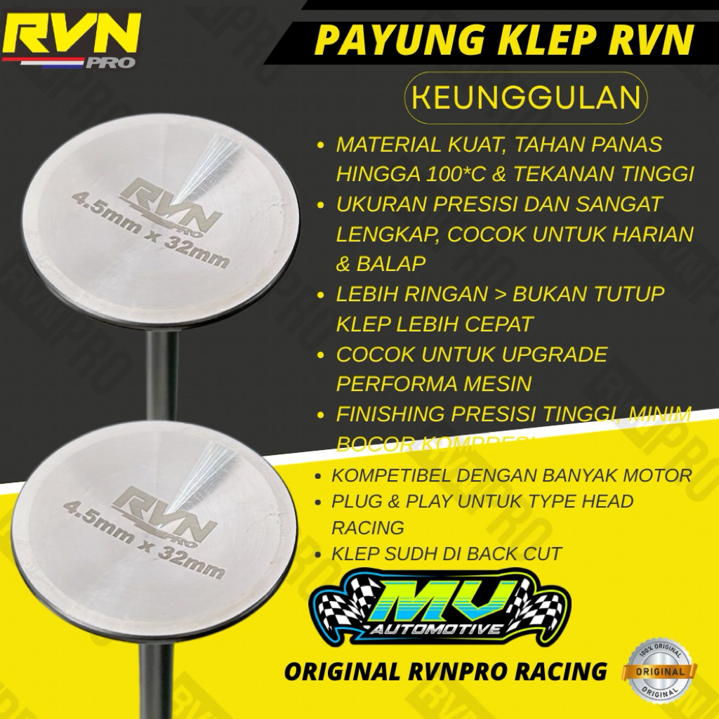 PAYUNG KLEP RVNPRO RACING RVN THAILAND 20 22 23 24 25 26 27 28 29 30 31 32 33 34 35 36 MM - PAYUNG KLEP RVN RACING BATANG 4.5 & 5 MM SIZE SATUAN RVN PRO RACING