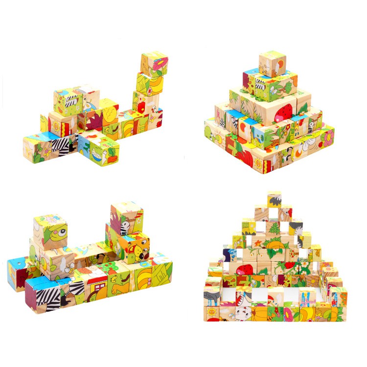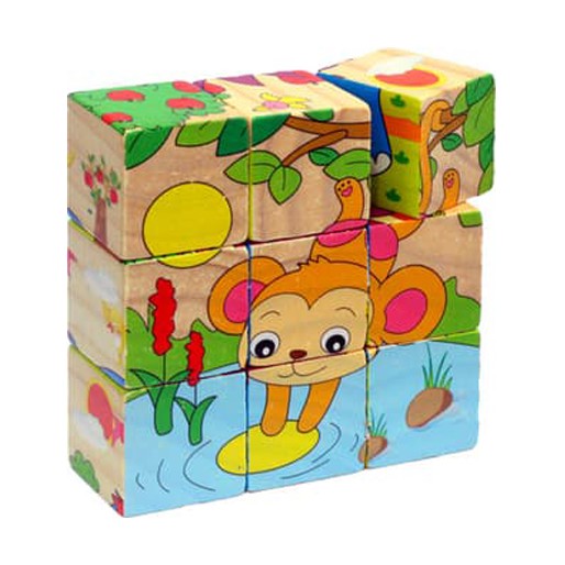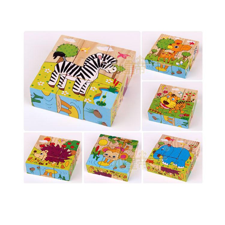 PB010 Puzzle Blok Kayu 6 Sisi Mainan Anak Balita Gambar Binatang Binatang