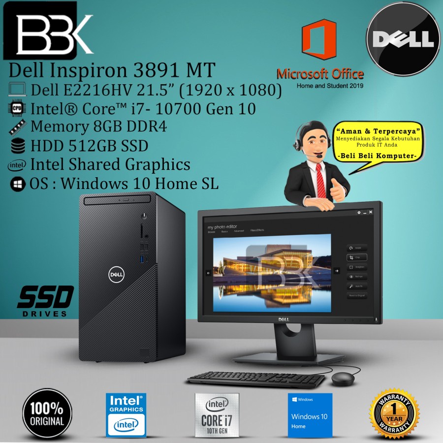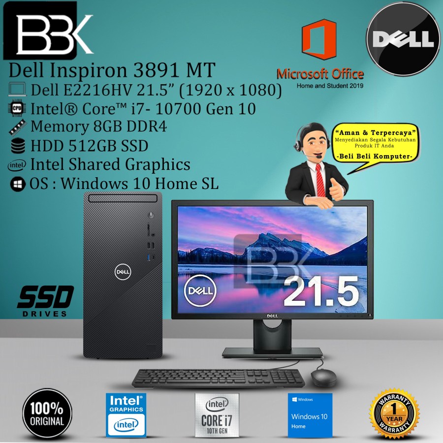 PC Dell Inspiron 3891 MT i7-10700 8GB 512GB W10HSL E2216HV OHS 1YR