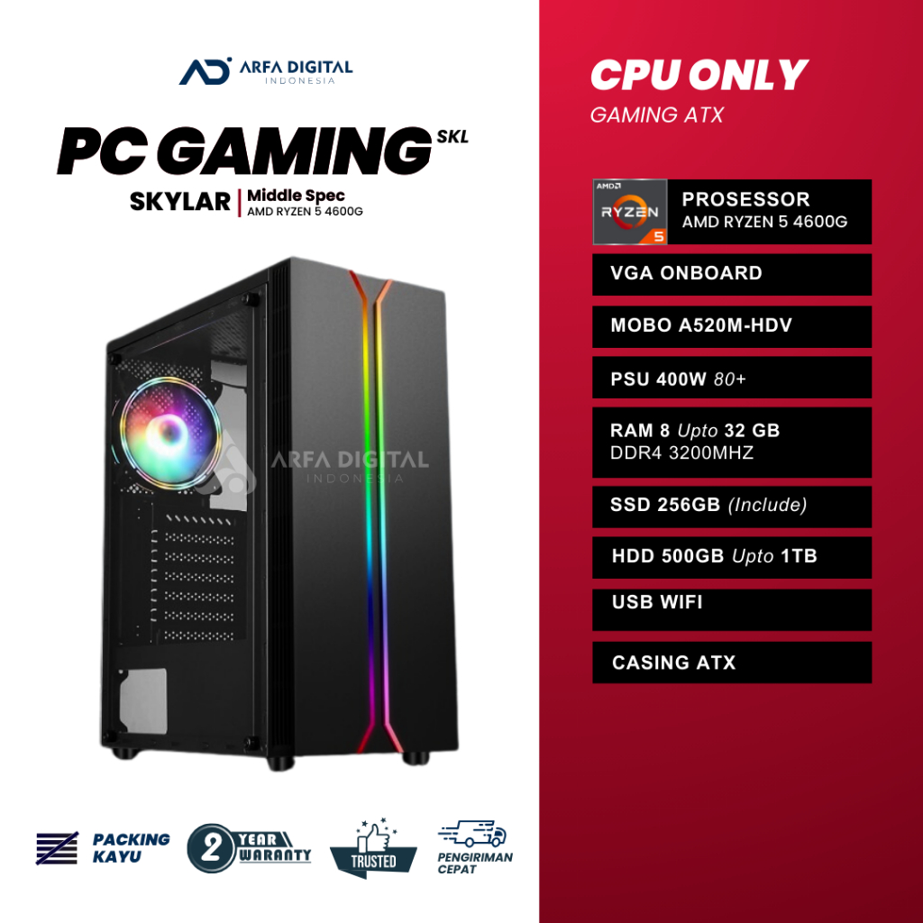 PC GAMING FULLSET AMD RYZEN 5 5500GT - SSD 256GB - LENGKAP LED 24 INC - RAM 16GB | SKYLAR