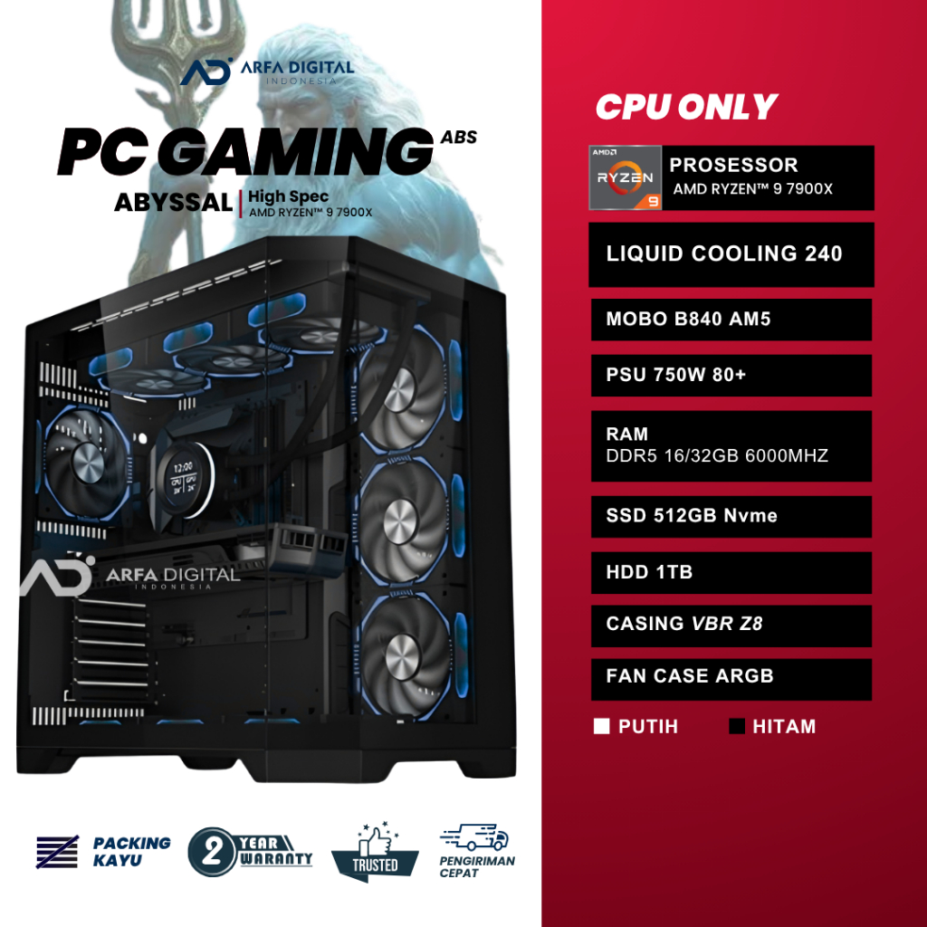 PC GAMING HIGH AMD RYZEN 9 7900X RAM 32GB DDR5 SSD 1 TB NVME VGA 8GB | ABYSSAL