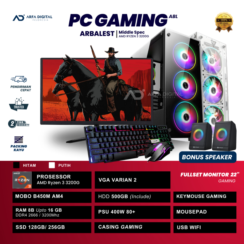PC Gaming Fullset AMD Ryzen 3 3200G RAM 16GB SSD 256GB VGA CARD 8GB Lengkap Monitor 24 Inch Siap Pakai | ARBALEST